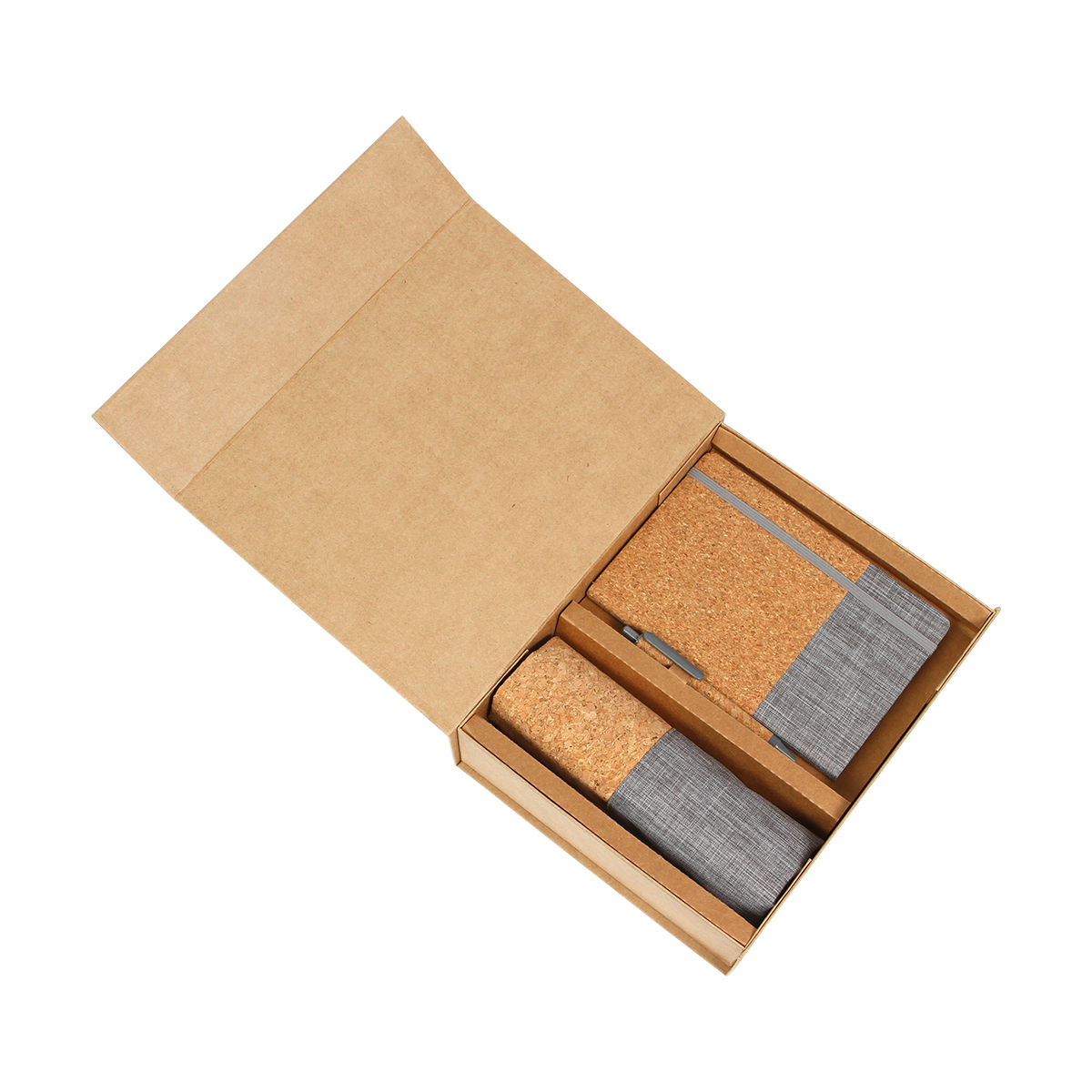 MATERIAL: CORCHO MEDIDAS: Caja: 30x23.8x7.6 cm. | Cuaderno: 14x21 cm. | Bolsa: 35x40 cm. | Bolígrafo: 13.8x0.93 cm. IMPRESION: Serigrafía / Tampografía MED. EMPAQUE: Caja: 30x23.8x7.6 PESO EMPAQUE: 8 kg. PIEZAS EMPAQUE: 10