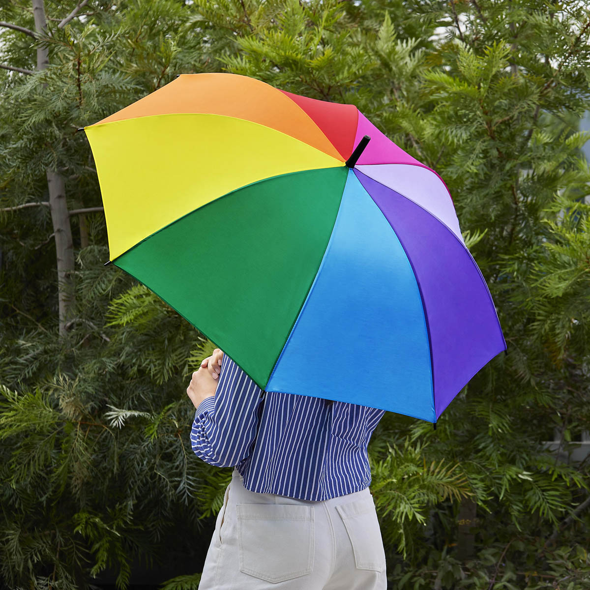PARAGUAS PRIDE - Paraguas de 8 paneles, cada panel de un color. Sistema manual. Mango de esponja. Su diseño arcoíris, colorido y alegre refleja la diversidad y la inclusividad.