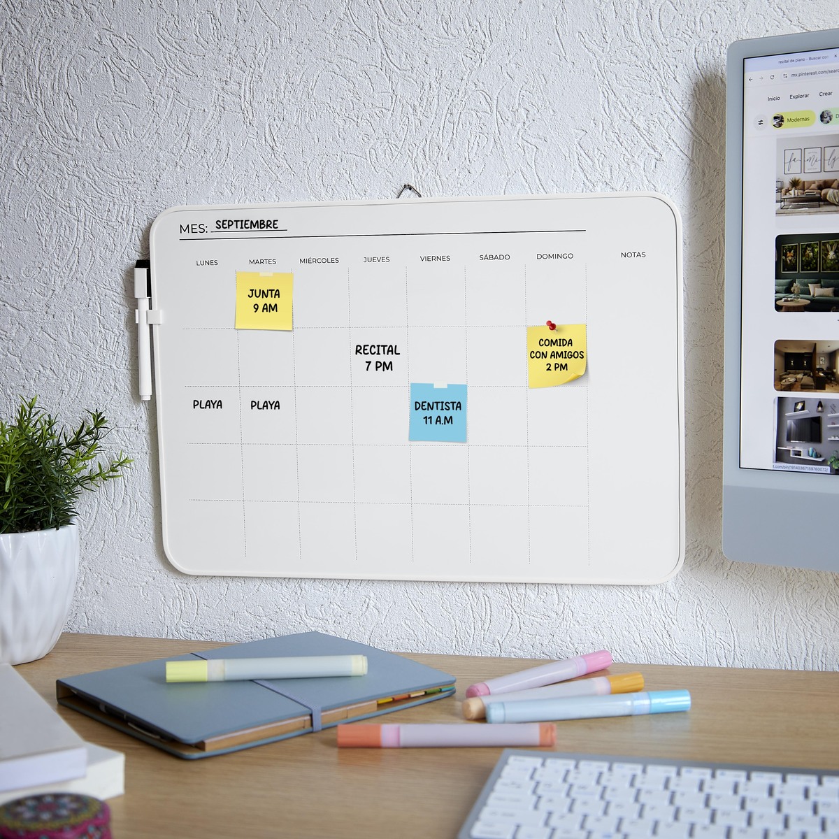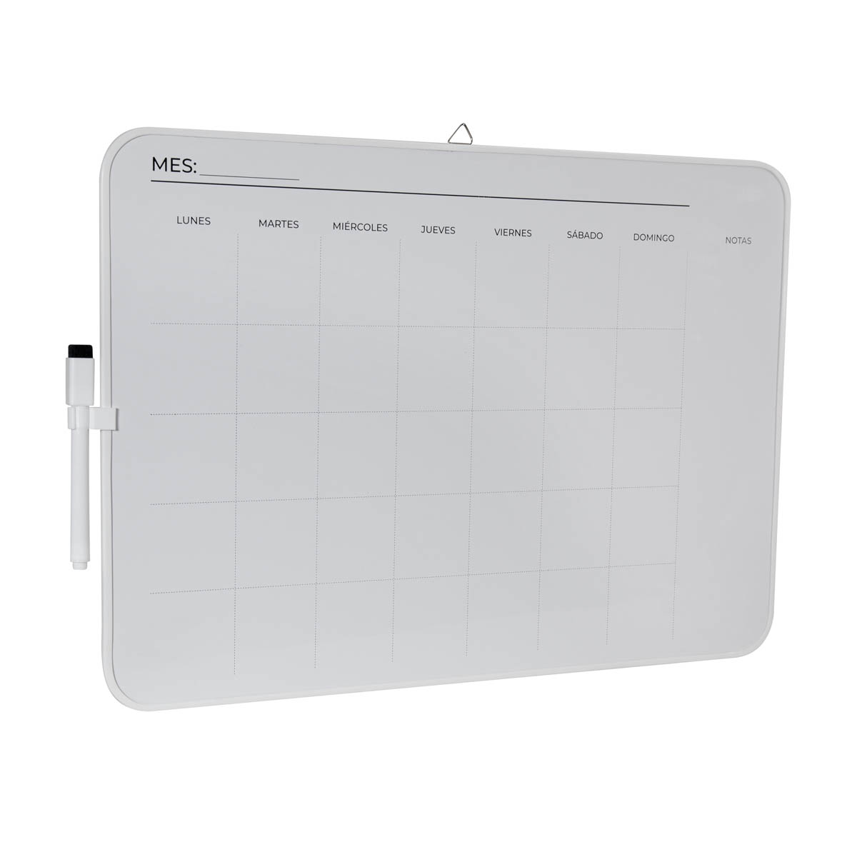 PINTARRÓN VECKA - Pintarrón con planeador mensual ideal para organizar tus prioridades. Incluye marcador con borrador y gancho superior para colgarlo fácilmente en tu espacio de trabajo. Su retícula te permite personalizar mes y días, perfecto para uso diario en el hogar, oficina o colegio.
