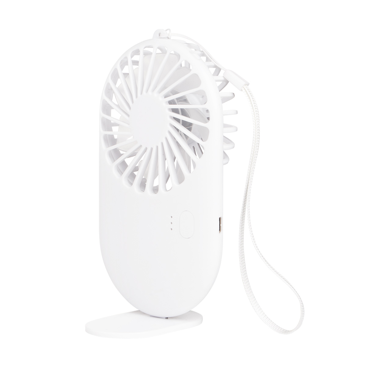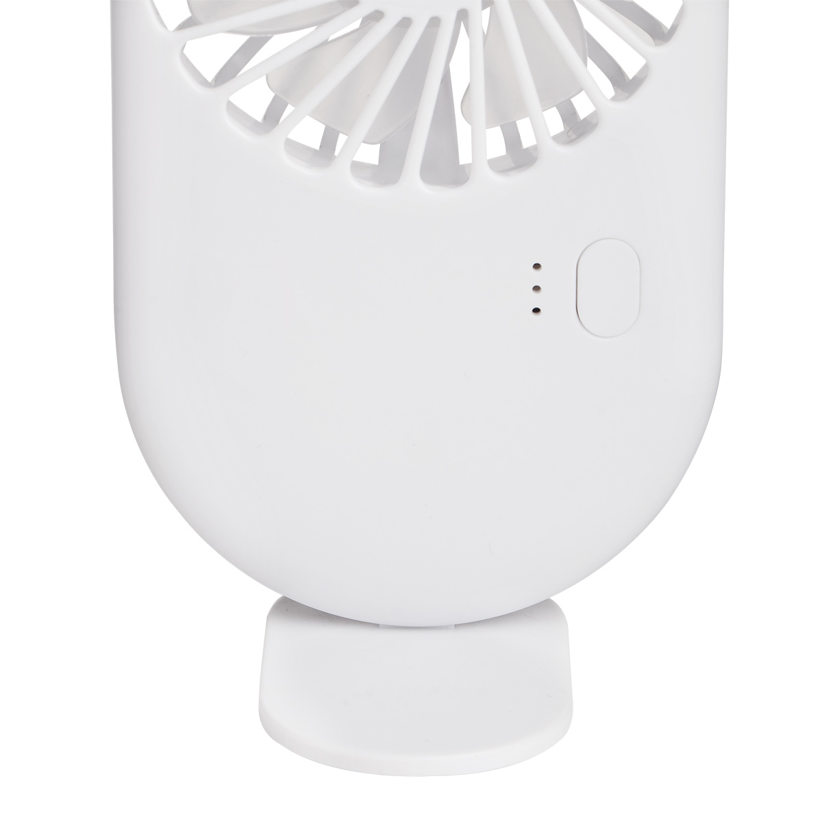 VENTILADOR AIR - Mini ventilador de 3 velocidades con batería recargable. Incluye base stand y cable USB.