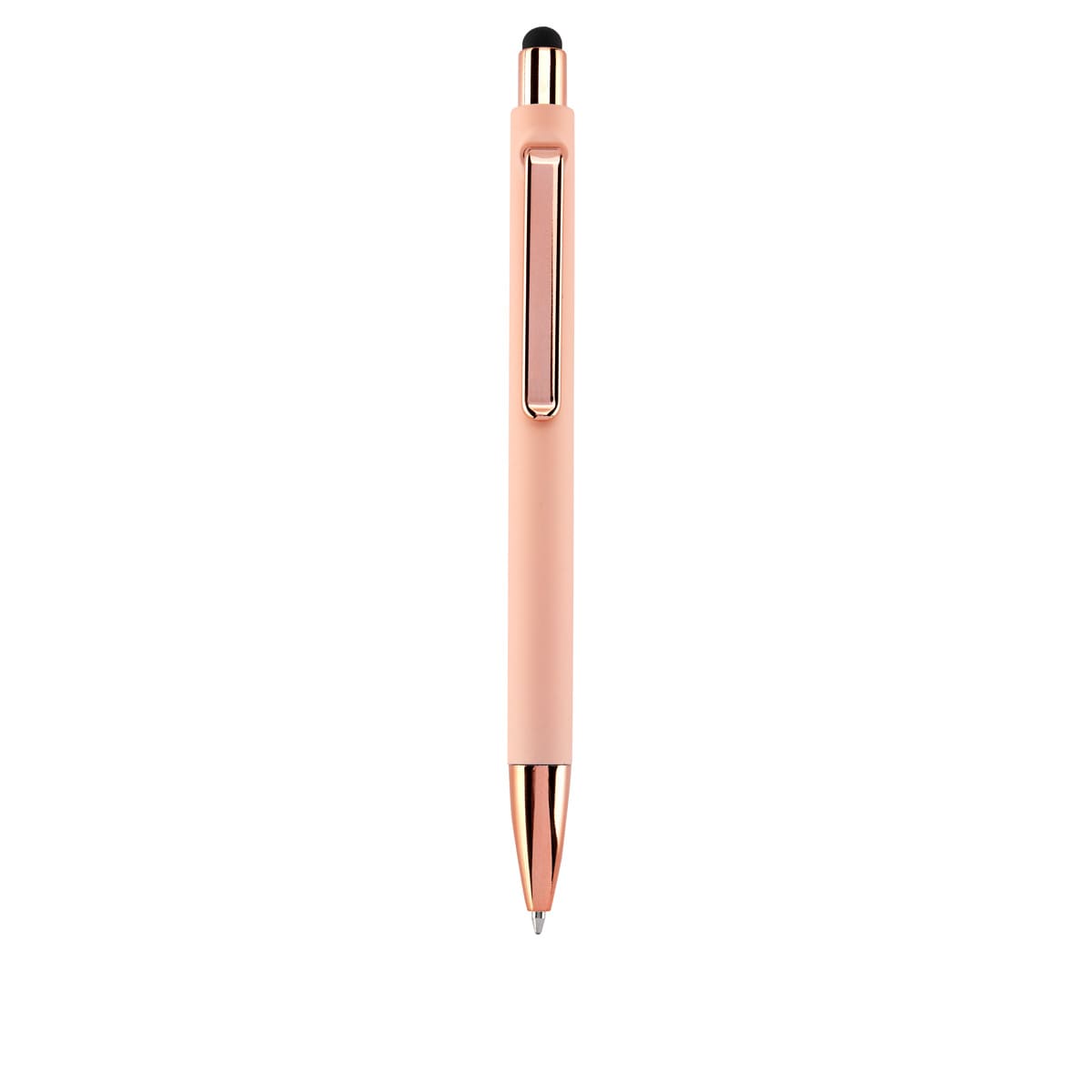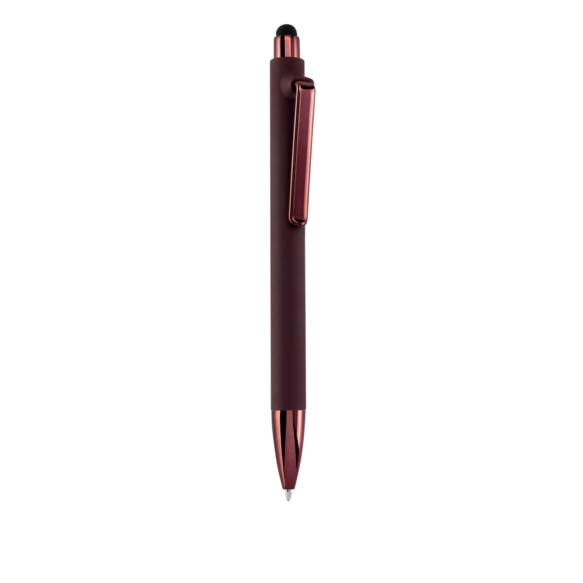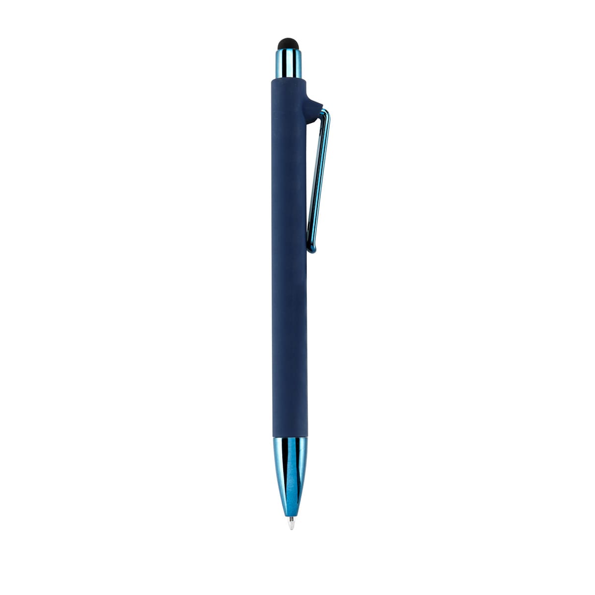 BOLÍGRAFO PISATI - Bolígrafo con terminado tipo rubber y touch screen. Mecanismo pulsador. Botón, clip y punta en color metalizado al tono.