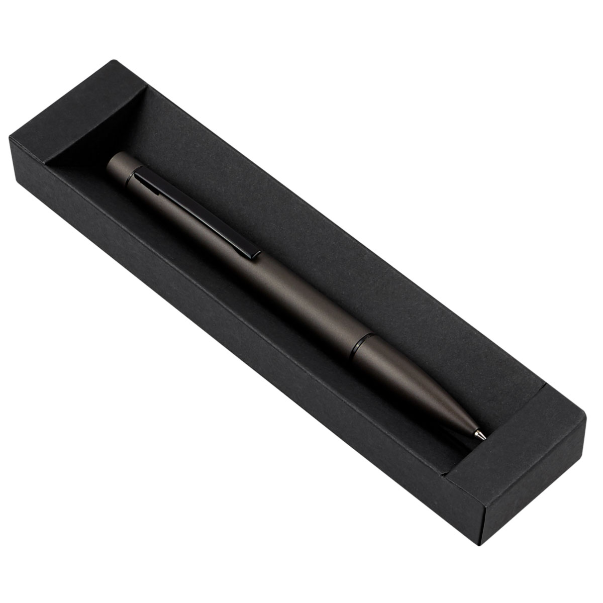 BOLÍGRAFO "ANGRA" Cuerpo color negro. Pulsador, clip y punta plata. Tinta negra...