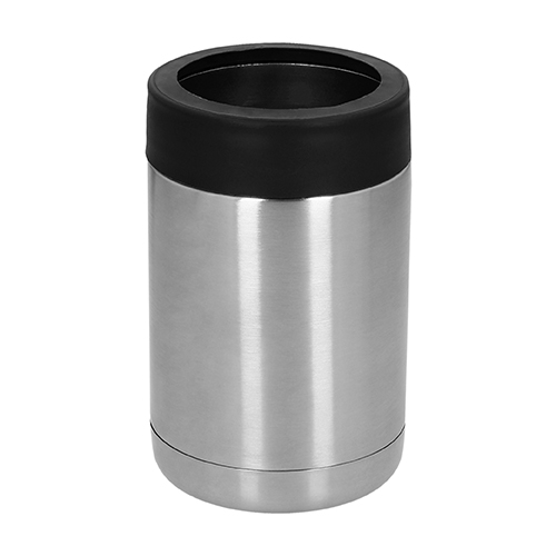 LAGER Porta latas con doble pared de acero inoxidable y tapa enroscable de plástico transparente con aditamento para convertirse en termo.