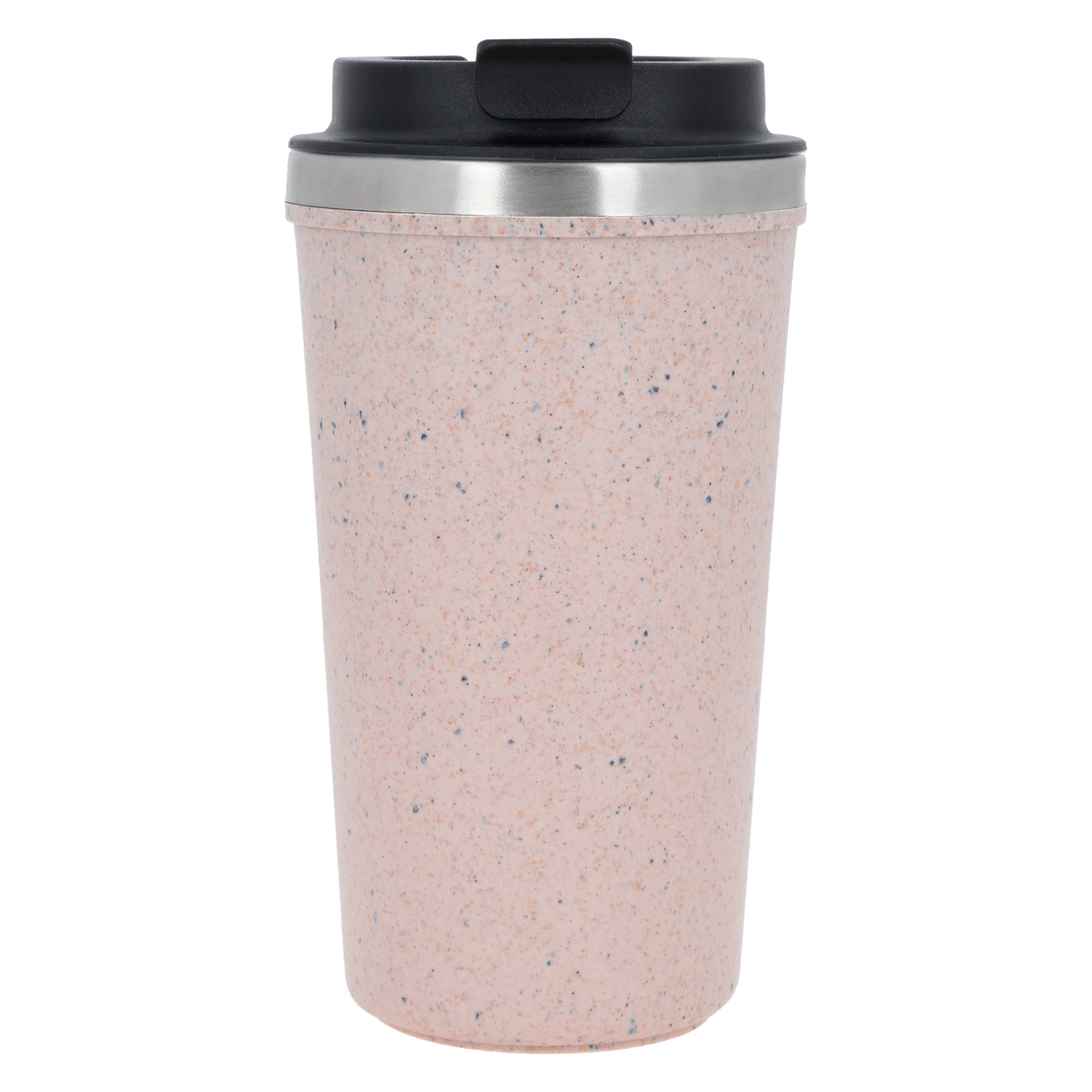 BEAN Termo de doble pared de acero inoxidable y exterior de plástico elaborado a base de granos de café reciclado con tapa plástica enroscable. Incluye en la parte inferior un chupón anti derrame.