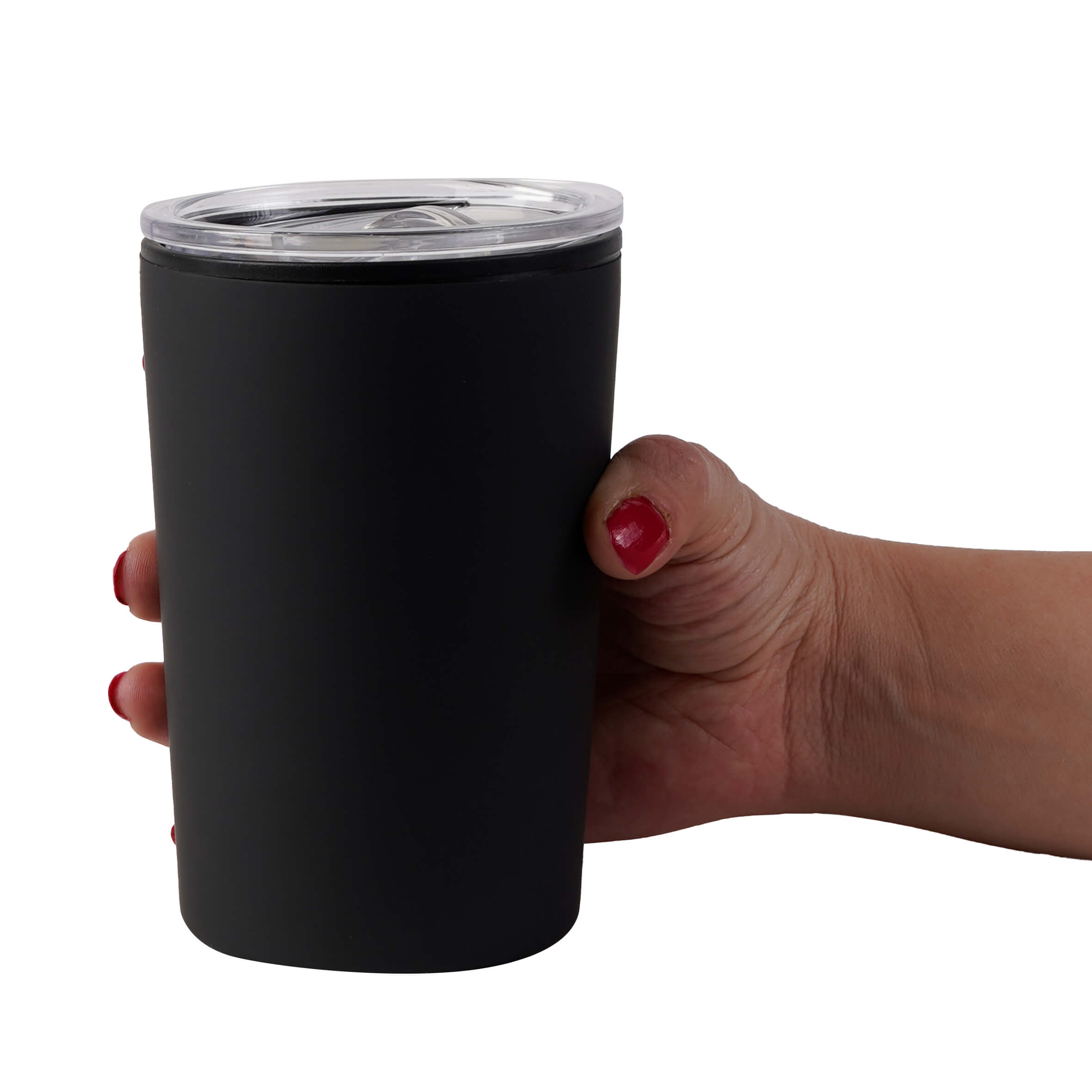 TOSHI Termo de doble pared con exterior de acero inoxidable e interior de plástico, con tapa de cierre a presión y seguro deslizable.
