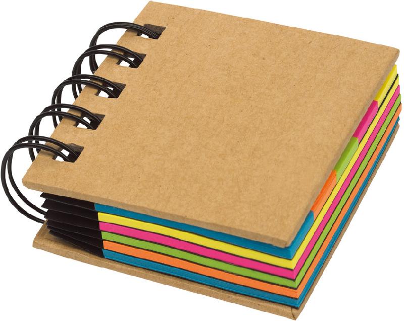 MEMO BOX ESPIRAL Material reciclado. 5 blocs autoadhesivos rectangulares grandes. 5 blocks autoadhesivos rectangulares chicos. Anillado.