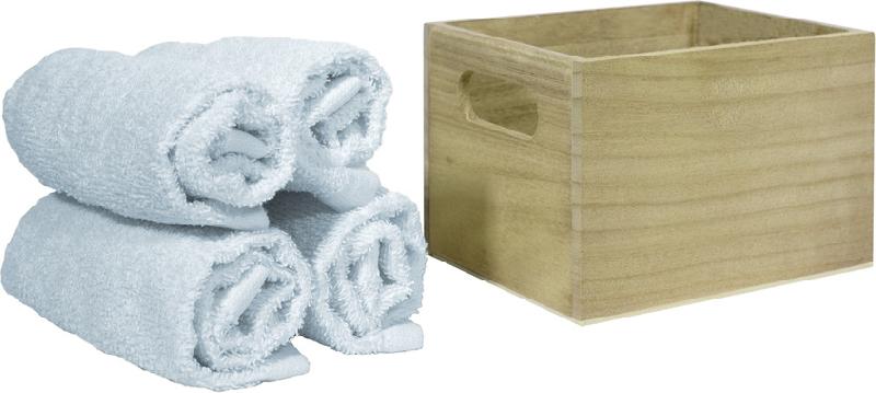 TOALLAS "LUCERNA" Set de 4 toallas de mano en caja de madera.