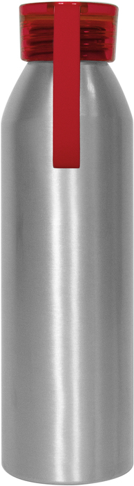 BOTELLA"HOP" Cuerpo color plata, tapa de color traslucida con tira de silicona (de 8 cm) del mismo color. Ideal para hidratarte todos los días. Presentación en caja de regalo.
