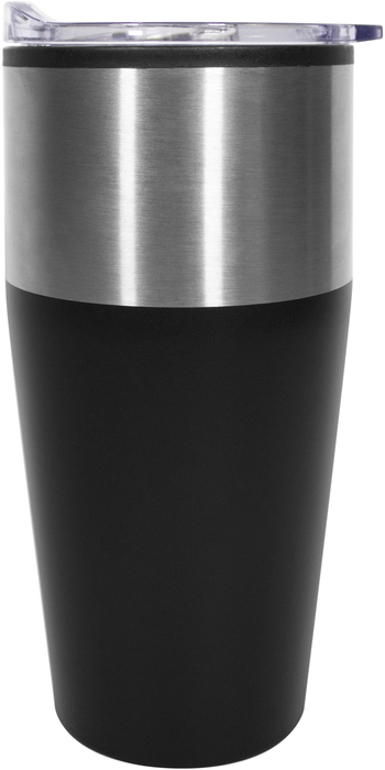 MUG "DYKER" Doble pared. Interior de polipropileno (PP) y exterior combinado con acero inoxidable 201. Tapa transparente con seguro antiderrame Presentación en caja de regalo.