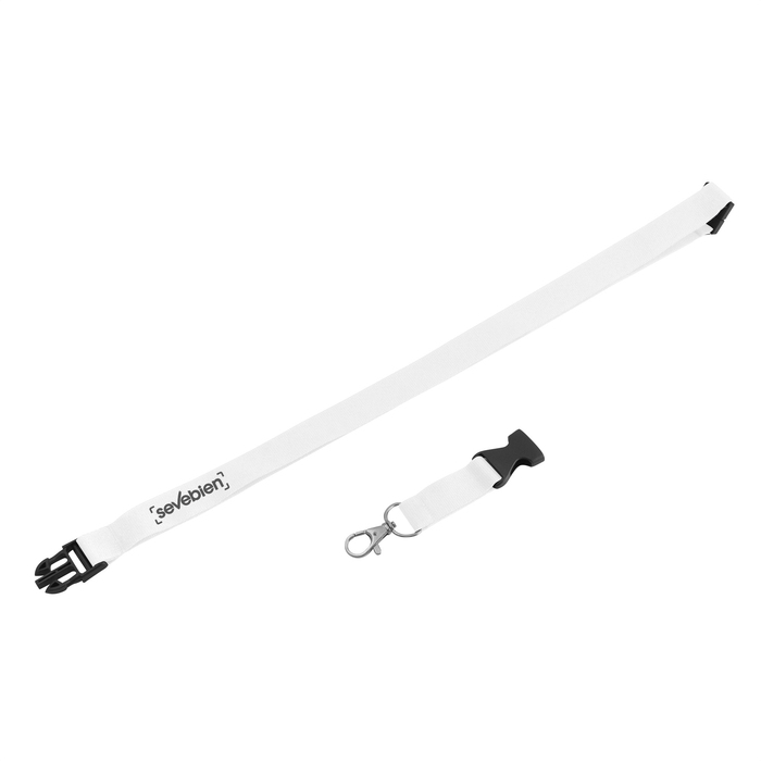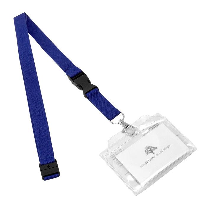 MATERIAL: Poliester + PP + metal. Porta gafete MEDIDAS: 57 cm de largo x 2 cm de ancho IMPRESION: Serigrafía Tampografía