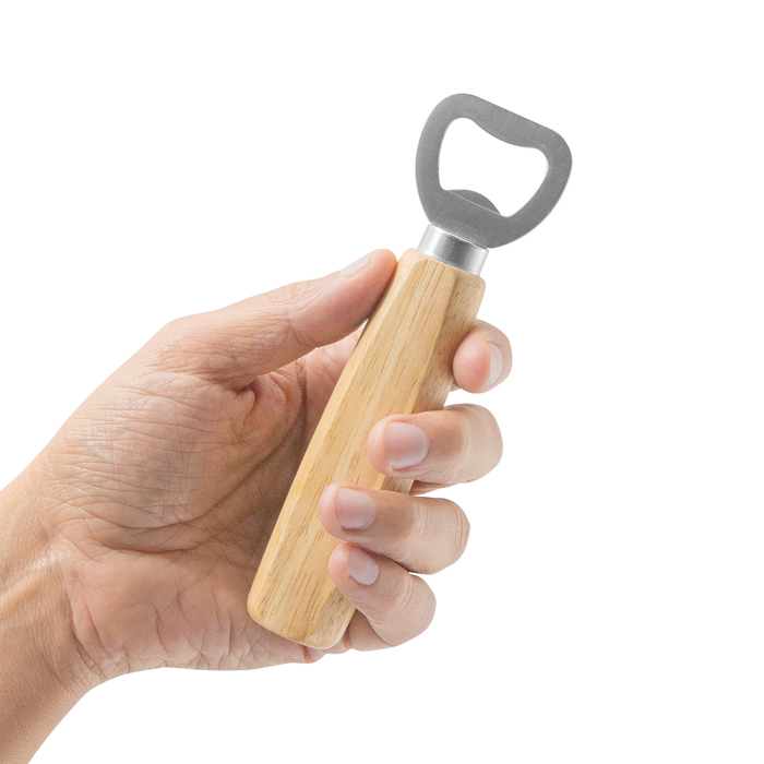 ABRIDOR DE BOTELLAS "ENJOY" Destapador con mango de madera barnizada. Presentación en caja de regalo kraft.