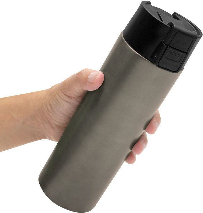 BOTELLA TÉRMICA "ALLY" Botella doble pared, sellada al vacío. Interior de acero 304 y exterior de acero 201. Pintura acabado mate. Tapa en PP con traba de seguridad y botón pulsador de apertura. Mantiene por más de 12 hs la temperatura de las bebidas calientes y 24 hs de las bebidas frías. Presentación en caja de regalo kraft.