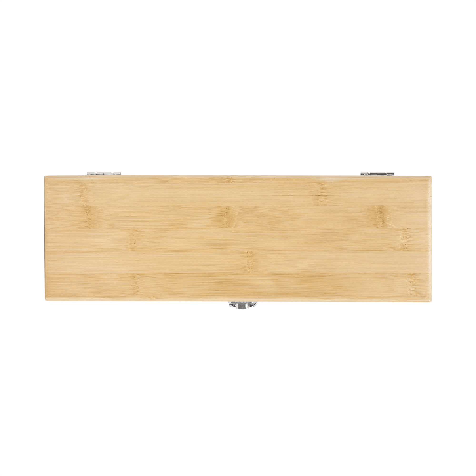 MATERIAL: Bamboo, acero inoxidable 420, 430 y 201, aleación de zinc y eva. MEDIDAS: 36 x 11,5 x 11,5 cm IMPRESION: Serigrafía, tampografía, grabado láser