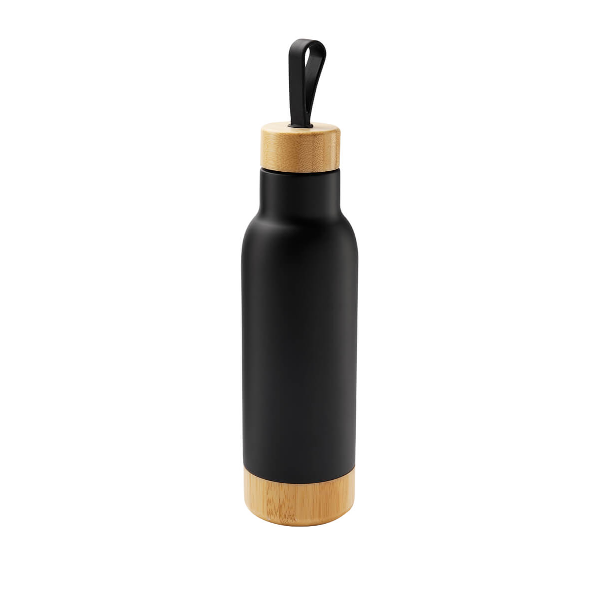 TERMO BAI - Doble pared. Cerrado al vacío. Pared interna y externa de acero inoxidable. Tapa de bambú con sistema de rosca, asa de silicón y base de bambú. Mantiene temperatura caliente 6 hrs y temperatura fría 12 hrs. Incluye caja individual.
