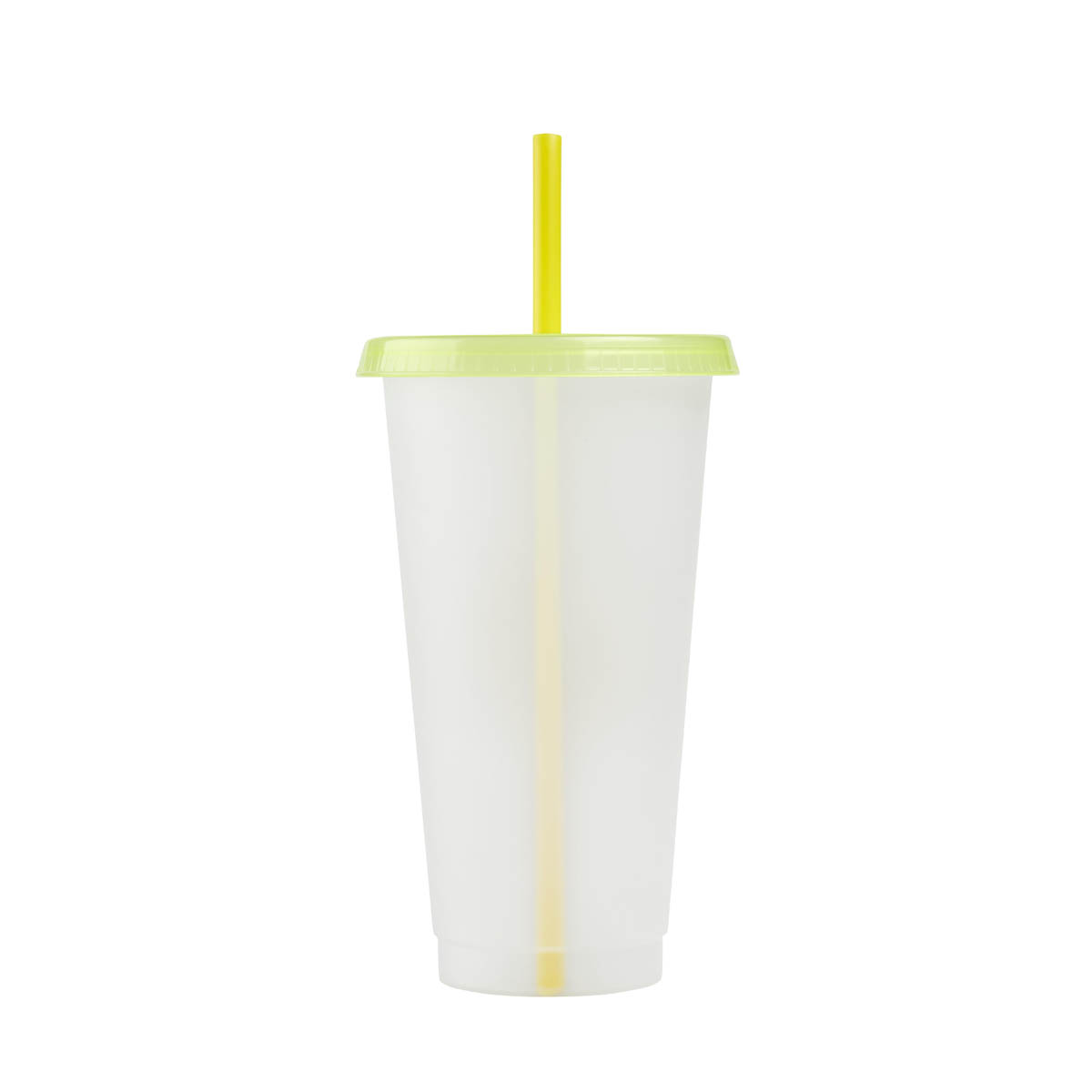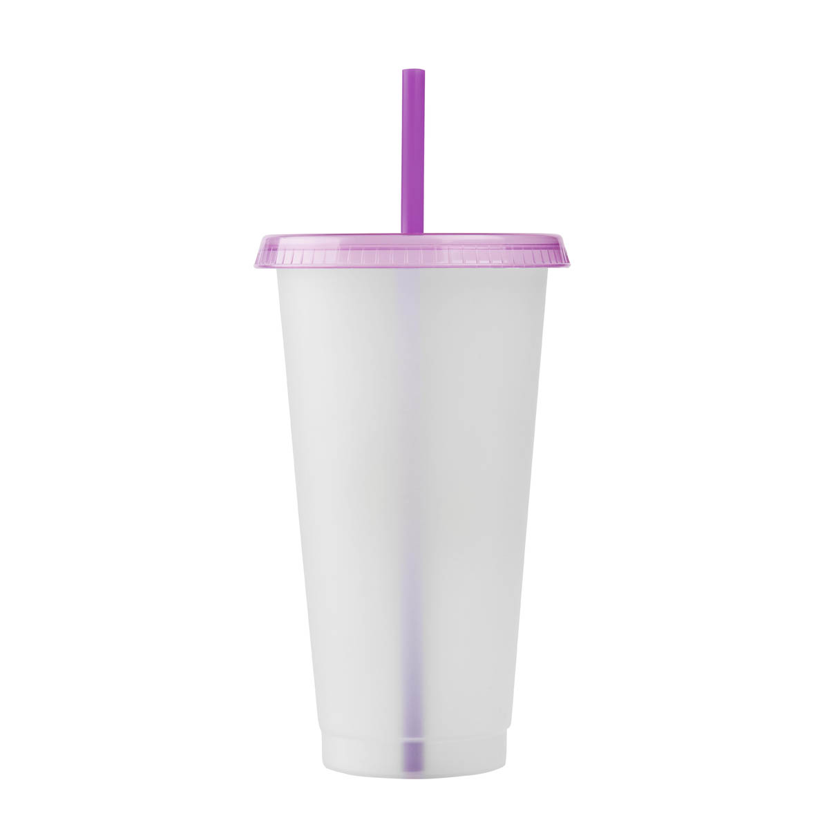 VASO BLUR - Vaso de plástico de una pared. Añade fantasía y diversión, con este vaso que cambia de color al verter bebidas frías. Su tapa y popote, coinciden con el tono que el vaso revelará al enfriarse, dando como resultado, un conjunto armonioso y divertido. Perfecto para quienes buscan una experiencia refrescante y visualmente atractiva en cada bebida. Capacidad 27 Oz. Base de 6.4 cm.