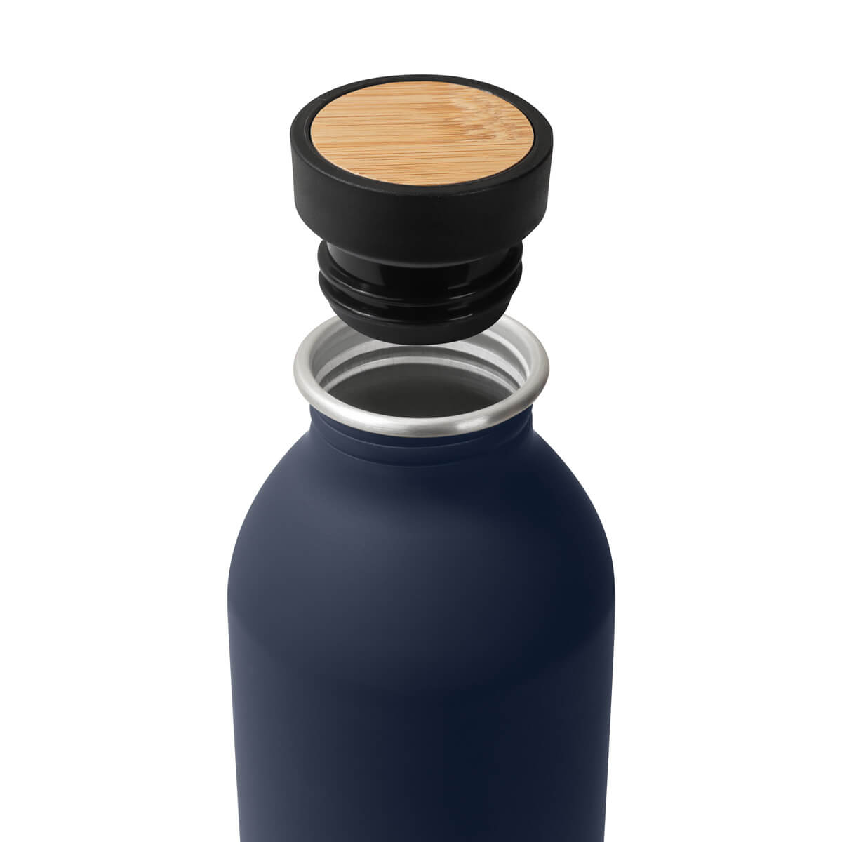 CILINDRO TOHUÍ - Cilindro metálico de una pared. Tapa de plástico y bambú, su sistema de rosca, permite cerrarlo facilmente y prevenir derrames. Su cuerpo en terminado mate le agrega un toque elegante. El bambú es un producto natural el cual puede presentar variaciones en tonalidades y vetas. Capacidad de 18 Oz. Incluye caja individual.