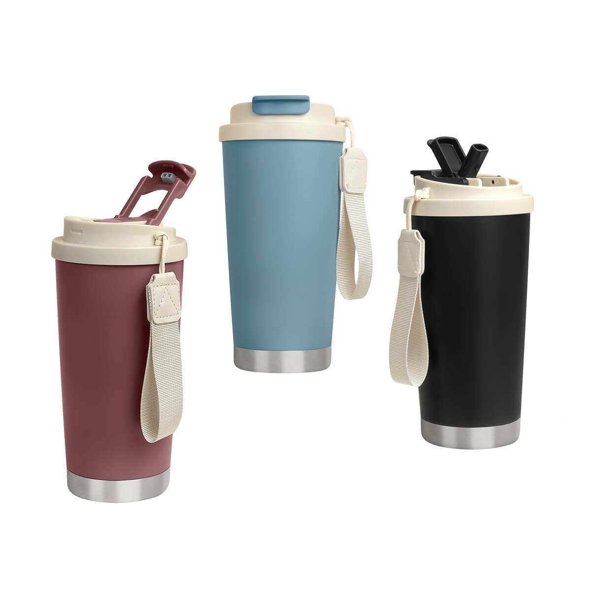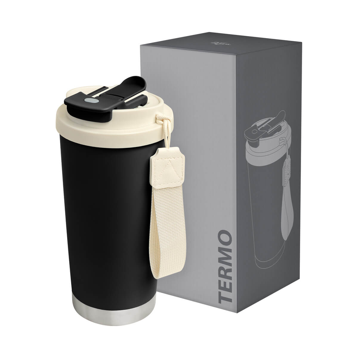 FORTE Termo de doble pared de acero inoxidable con asa de silicón en la tapa....