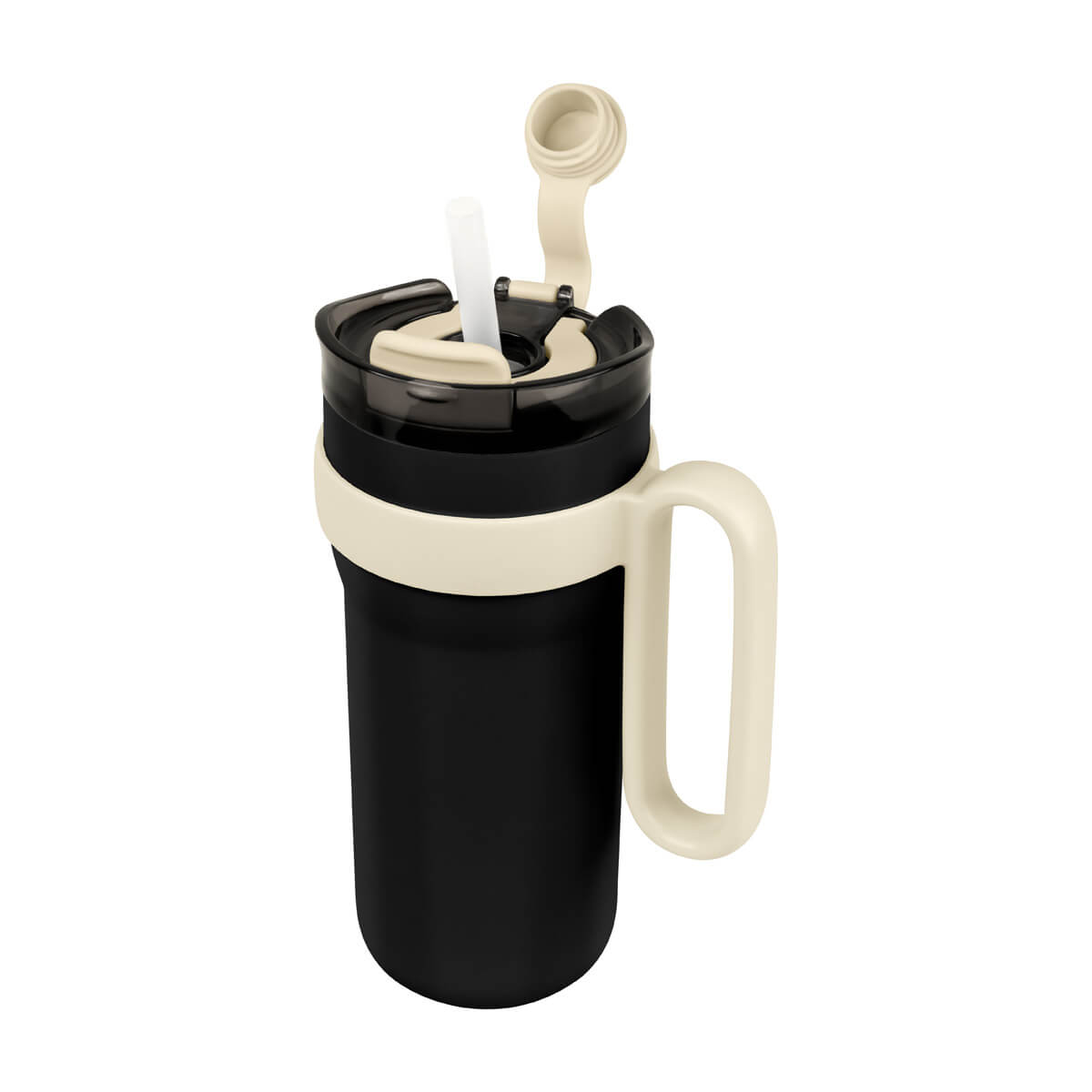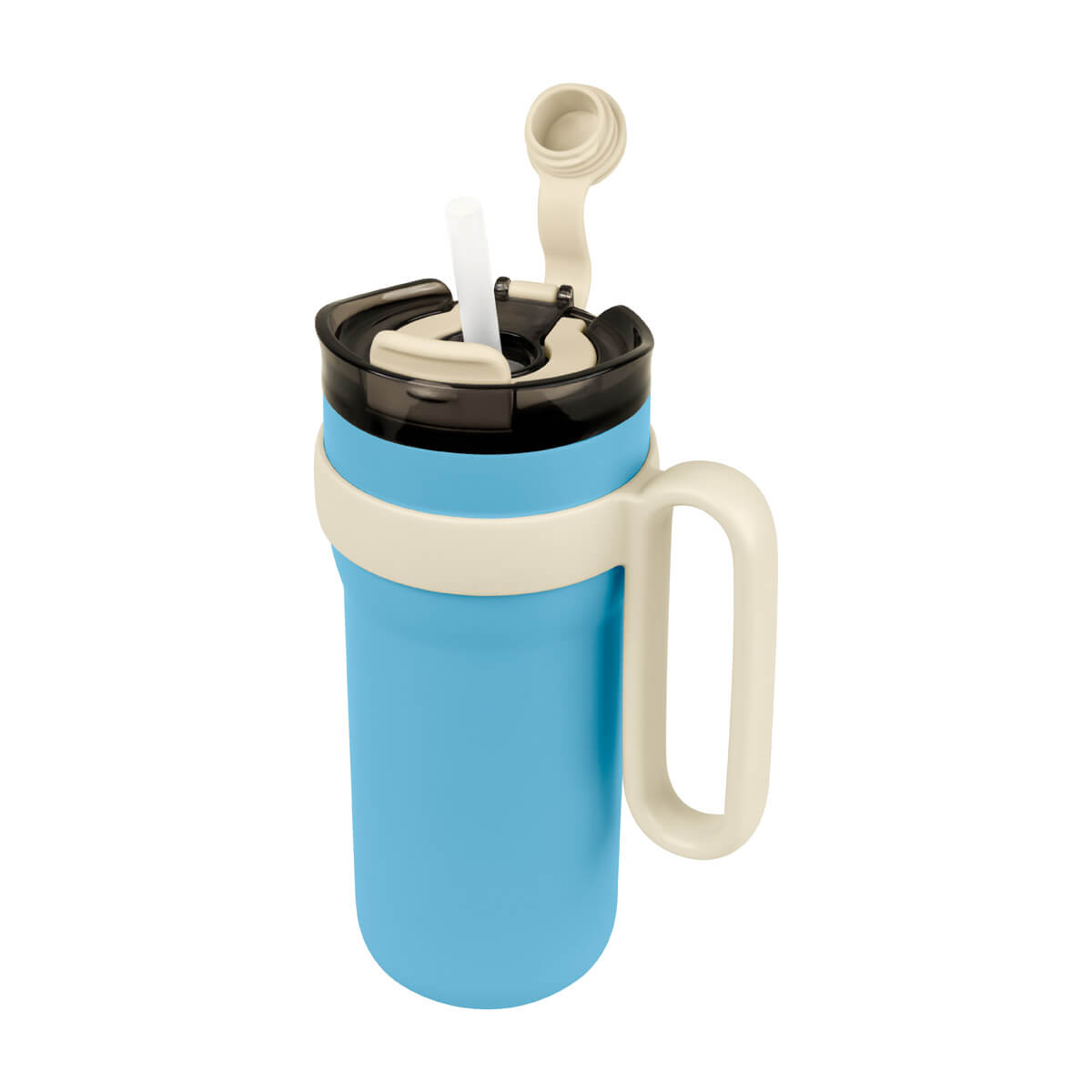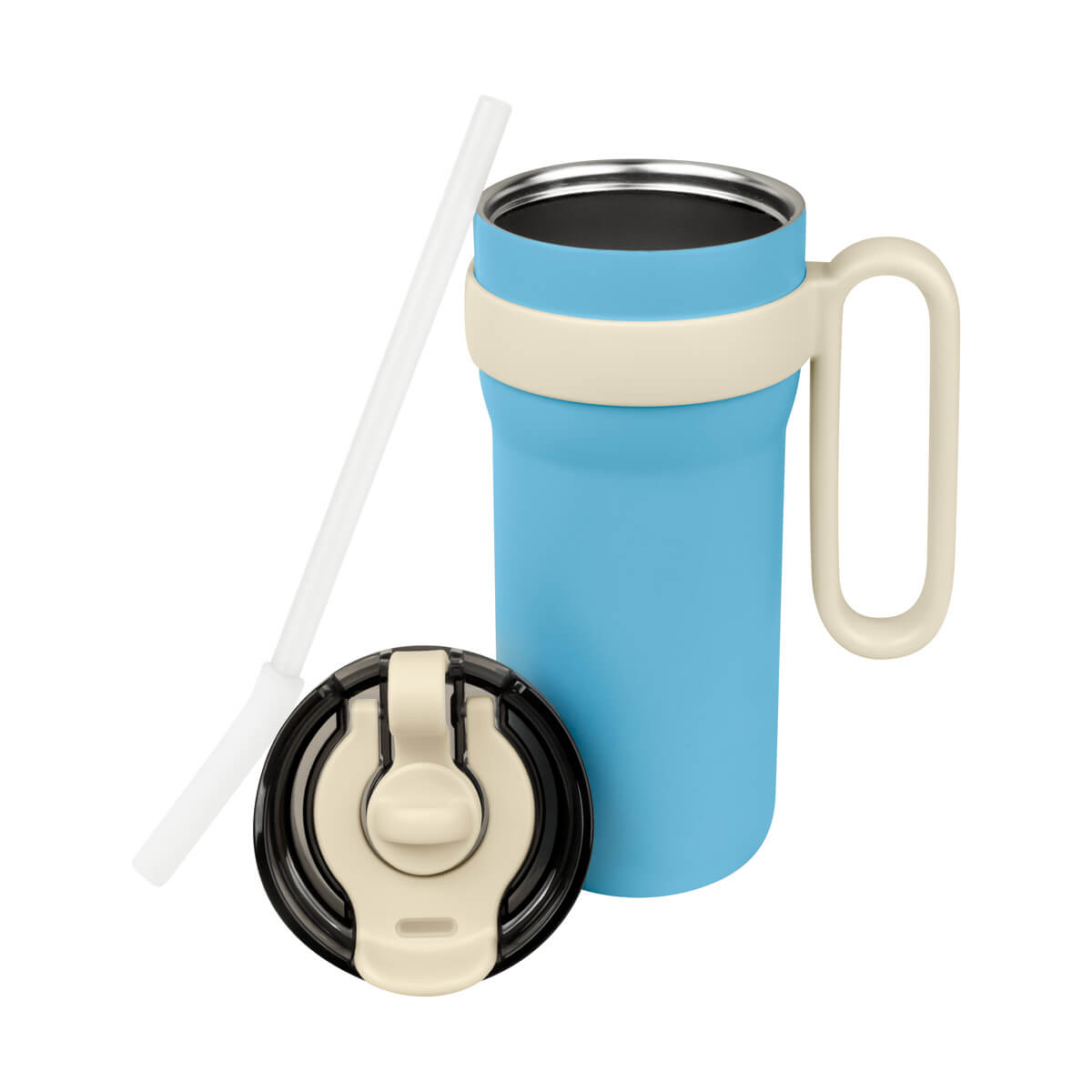 TERMO RANTAI - Termo doble pared. Cerrado al vacío. Pared interna y externa de acero inoxidable. Cuerpo con terminado rugoso. Incluye tapa con cierre de rosca que ofrece dos alternativas de uso, sobretapa con sistema push y ranura especial para popote con aditamento para cerrar y evitar derrames. Incluye popote de plástico que cuenta con un mecanismo de salida automática y una base de silicón, que lo eleva al abrir el compartimento. Además, su original asa permite llevarlo cómodamente a cualquier lugar. Mantiene temperatura caliente 6 hrs y temperatura fría 8 hrs. Capacidad 30 Oz. Base de 8.5 cm de diámetro. Incluye caja individual.