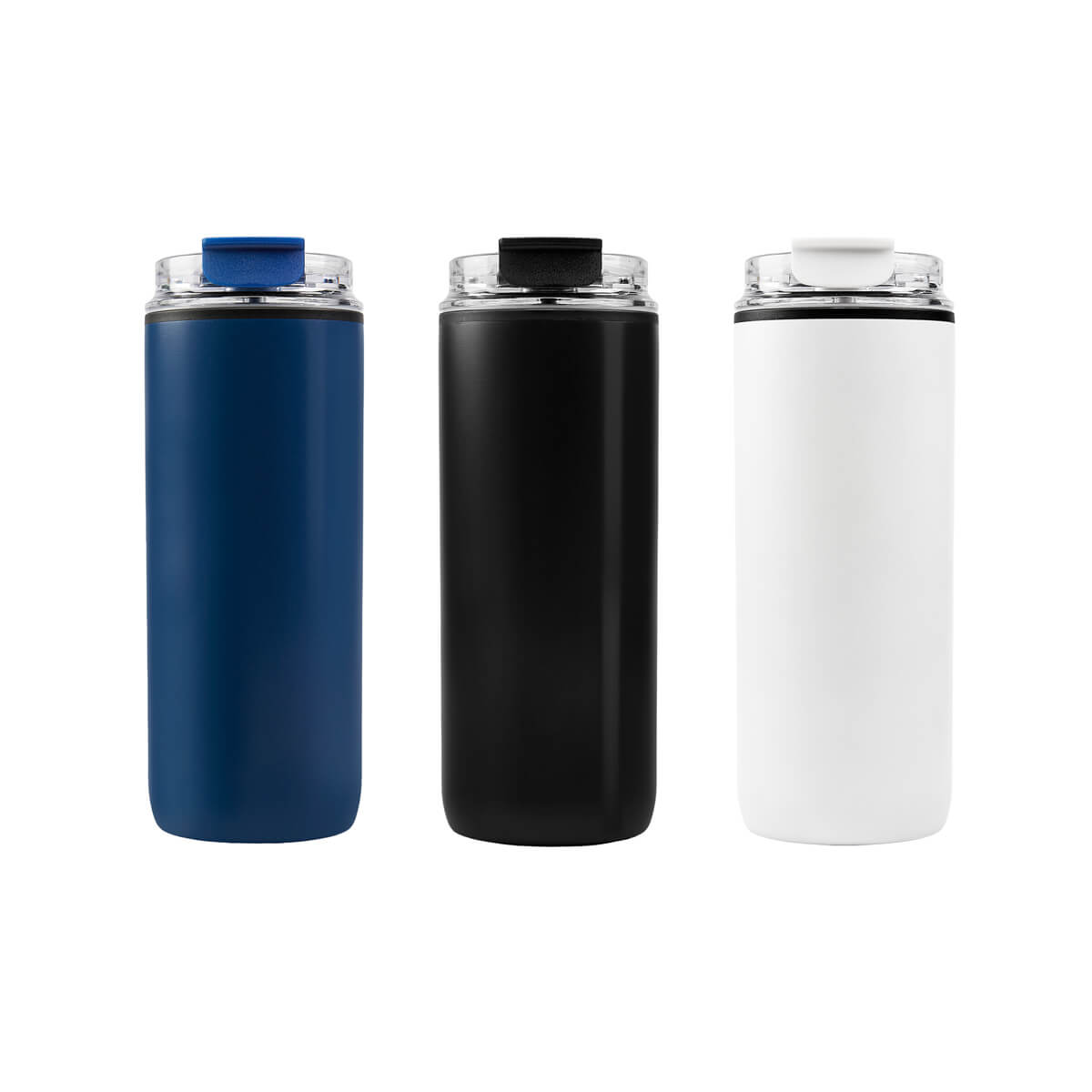 TERMO YAKU - Termo doble pared. Pared interna de plástico y externa de acero inoxidable. Tapa con sistema de rosca que garantiza un cierre hermético. Sobre tapa con sistema push que previene derrames. Capacidad de 16 Oz. Incluye caja individual.