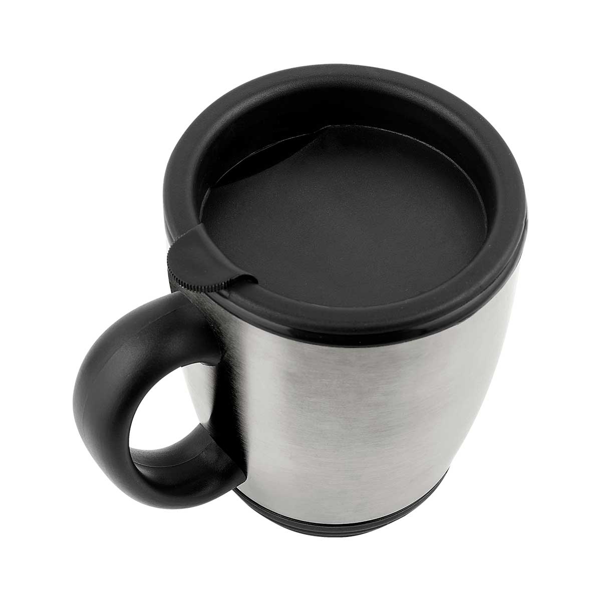TAZA KINSALE - Doble pared. Pared interna de plástico y externa de acero inoxidable. Tapa de plástico con ranura. Incluye caja individual. No usar en microondas ni lavavajillas.