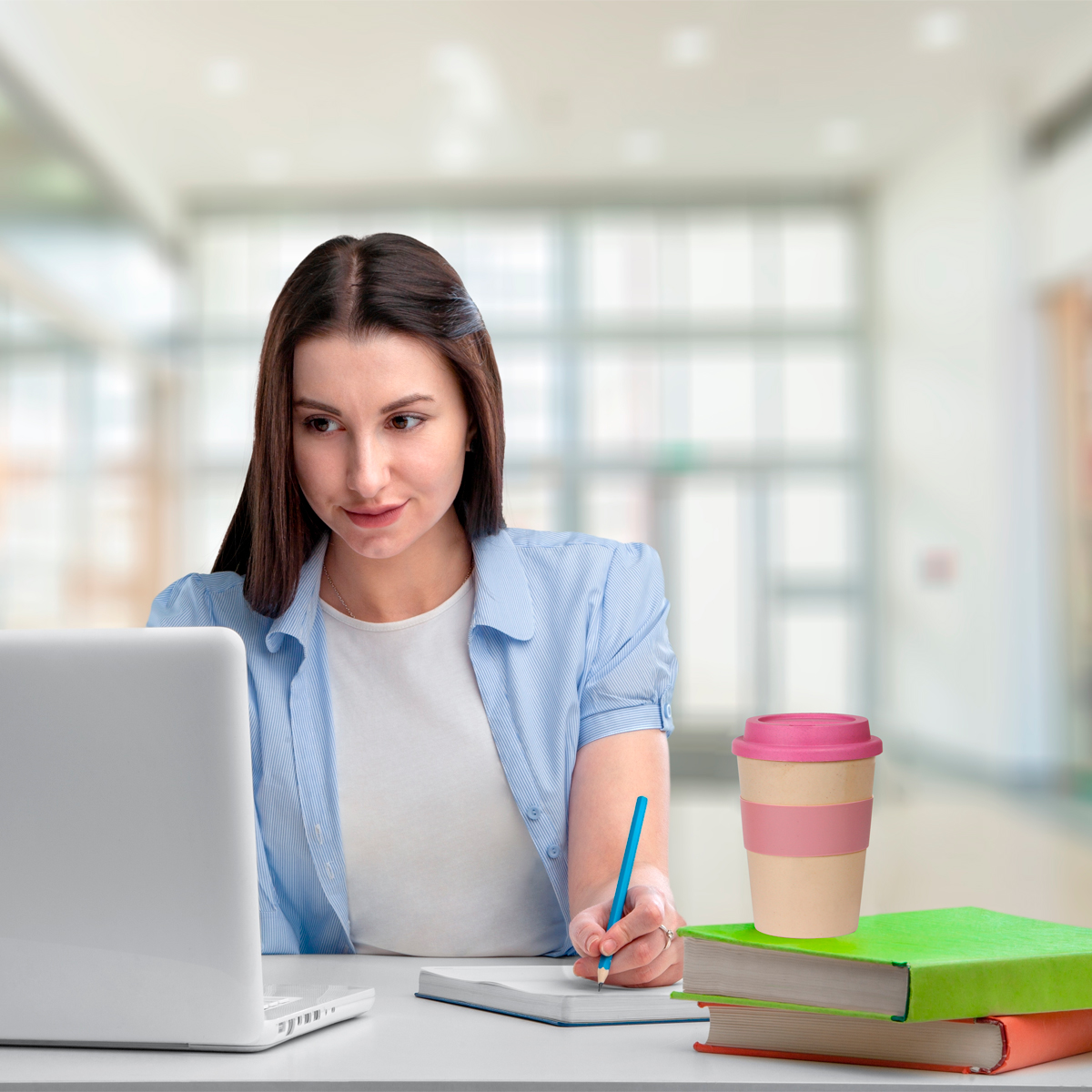 Vaso Figueres. - Vaso de fibra de bambú y polipropileno, con doble pared para mantener mas tiempo la temperatura de los líquidos, con manga de silicón con detalle de color que va a juego con el color de la tapa. Capacidad de 340 ml (12 oz). Además de su diseño funcional, este vaso es una elección consciente para el medio ambiente, gracias a su fabricación con fibra de bambú, un material renovable y sostenible.