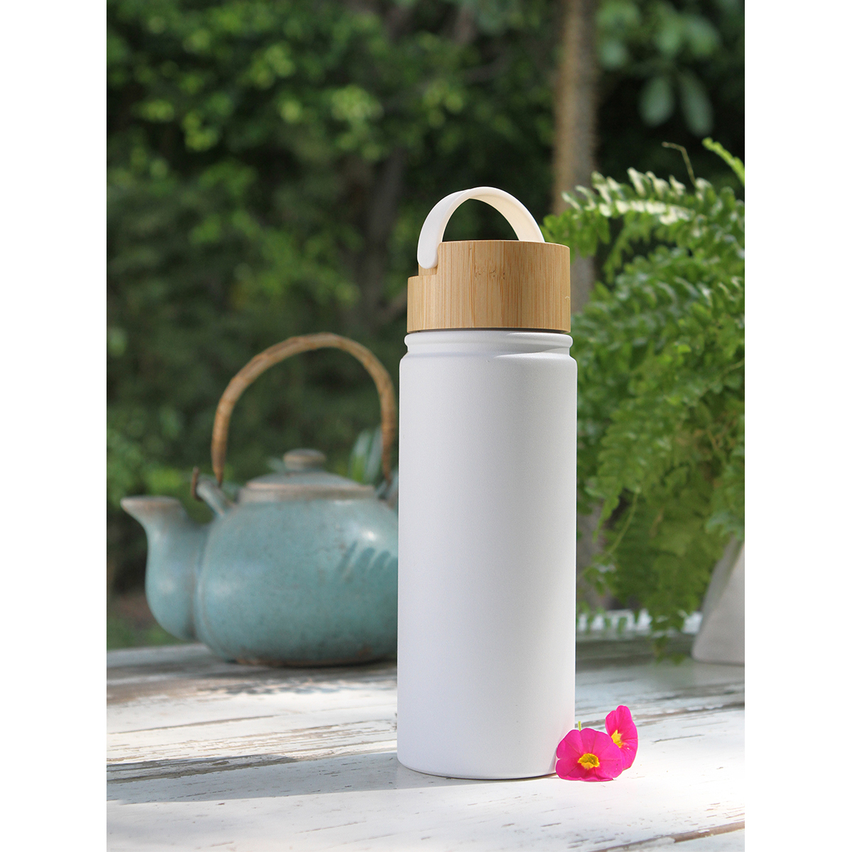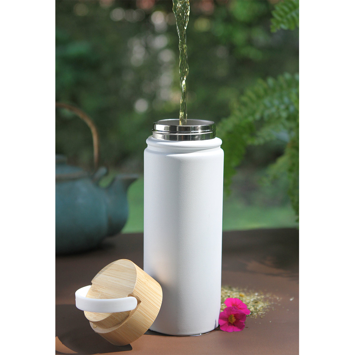 TATAMI - Termo de doble pared de acero inoxidable con exterior de bambú. Tapa d...