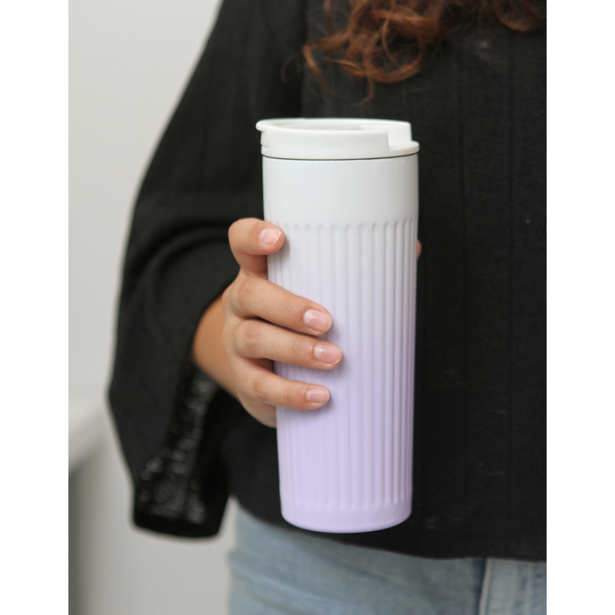 Termo Gardin. - Termo cilindro de doble pared de acero inoxidable con tapa plástica y colores degradados, su tapa es ideal para transportar bebidas calientes con seguridad y sin derrames. Capacidad de 500 ml, no usar en microondas, incluye caja individual