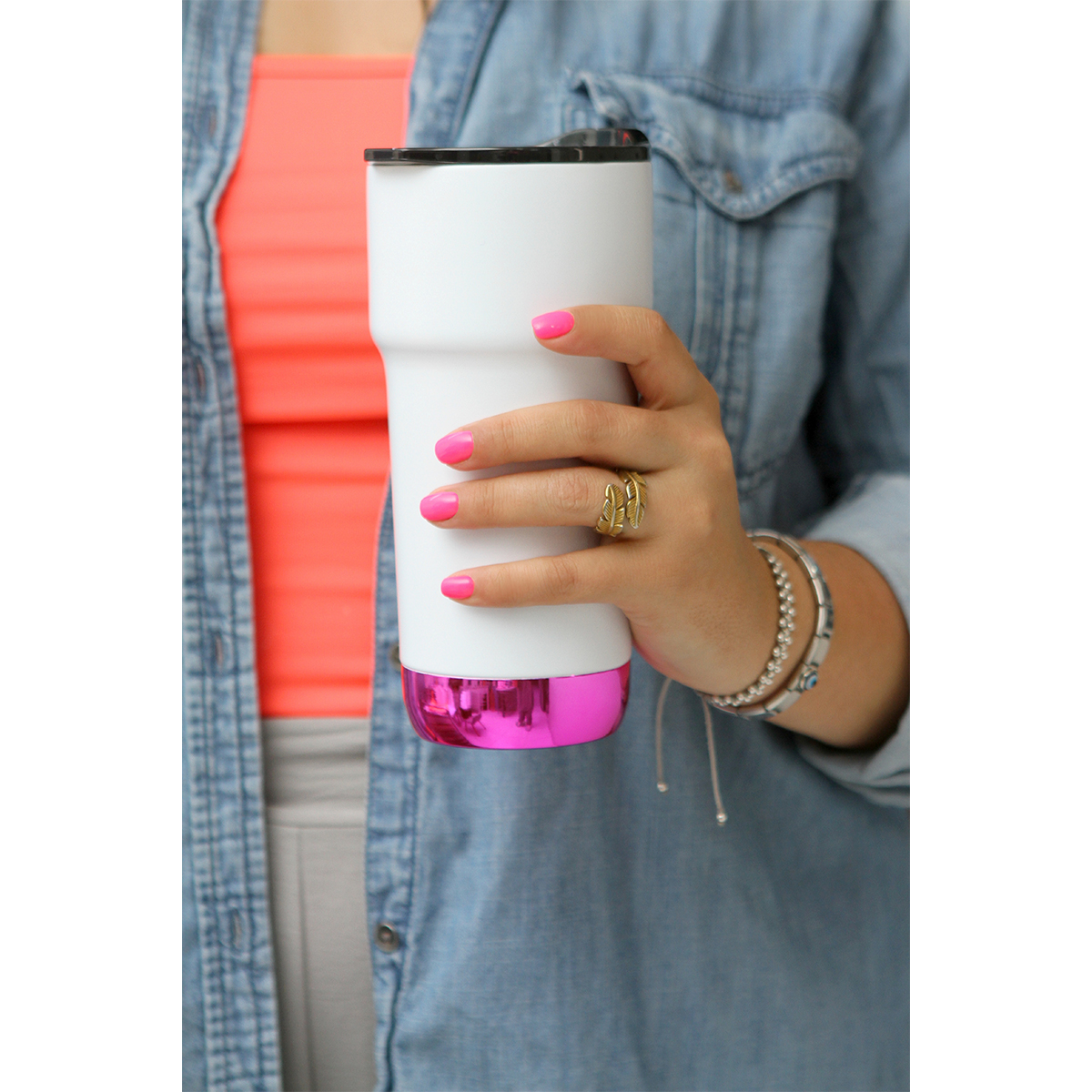Termo Bognor. - Termo de doble pared fabricado en acero inoxidable, diseñado para mantener tus bebidas frías o calientes por más tiempo. Capacidad de 590 ml. (20 oz), con detalles en la base en colores metálicos y tapa con detalles en color metálico. Resistente, duradero y con acabado moderno, es la opción ideal para el día a día o actividades al aire libre.
