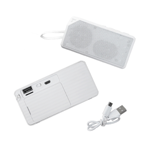 BOCINA BLUETOOTH RECTANGULAR Acabado Rubber y base antiderrapante. Función Manos Libres incluida, cable cargador USB, formato MP3, entradas USB, OTG y MicroSD. Duración aproximada de 3 horas. Alcance máximo de conexión 10 m.