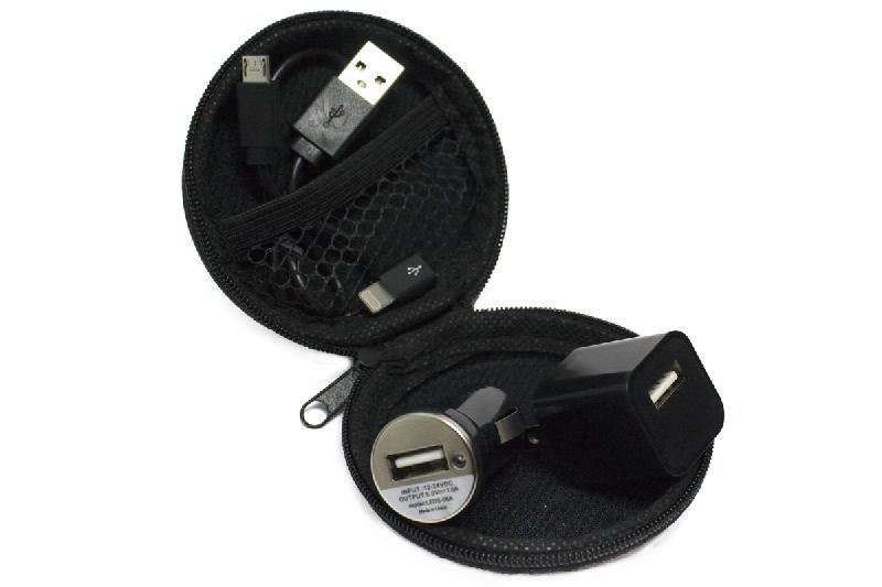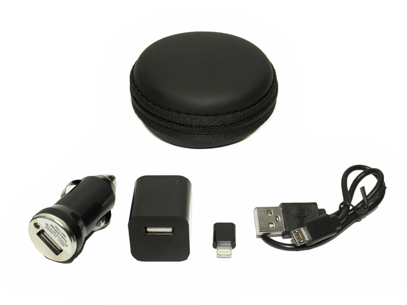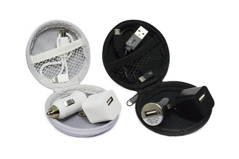 KIT CARGADOR para casa y auto. Incluye estuche del mismo color de los adaptadores. Incluye cable adaptador para iOS y Android.