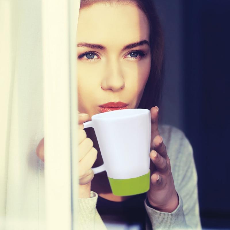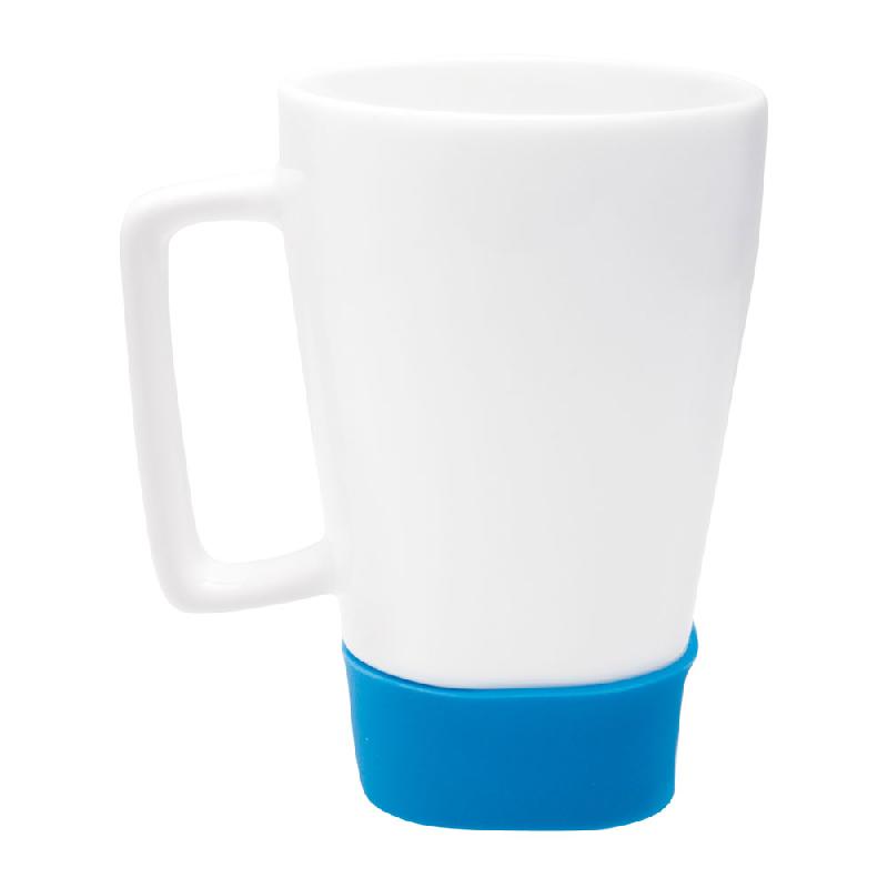 Taza de cerámica con base de silicón. Medidas: Ø 7.5 x 11.8 cm Material: Cerámica y silicón. Empaque: Caja de cartón.