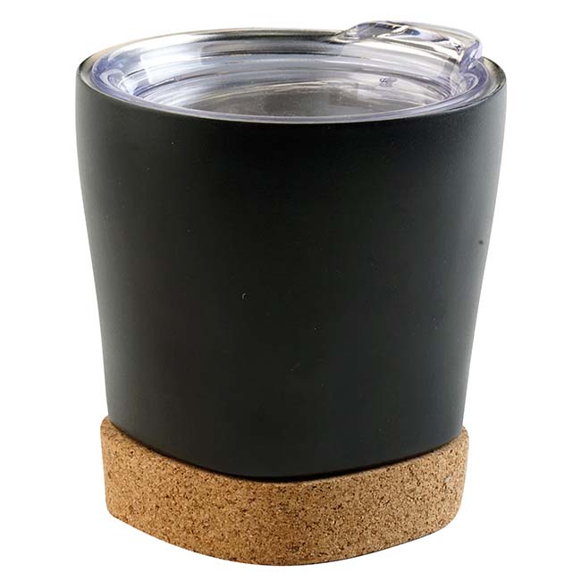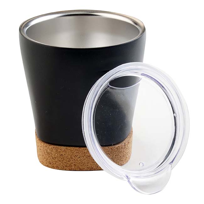 Vaso Alpino Capacidad: 286 ml. Sistema de doble pared al vacío. Base en corcho. Color: Negro.