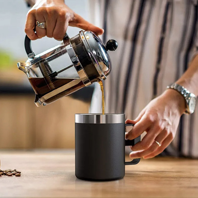 Taza Maple Capacidad: 350 ml. Sistema de doble pared al vacío. Tapa con cierre a presión y lengüeta deslizable. Colores: Blanco y Negro.
