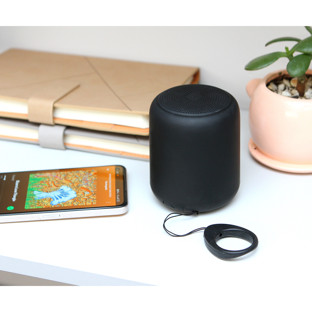 Bocina Annaba. - Bocina inalámbrica portátil fabricada en plástico ABS con acabado suave al tacto tipo goma. Cuenta con una frecuencia de 20KHz. El tiempo de carga es de 2 a 3 horas, resistente al agua con puerto de carga tipo C, tiempo de trabajo de 3.5 a 4.5 horas.