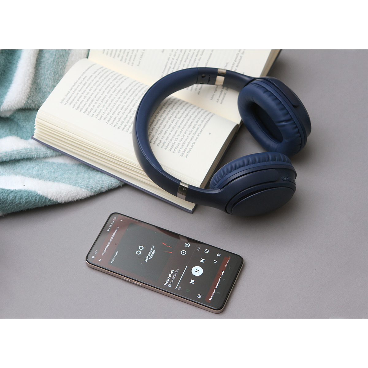 Audífonos Hastings. - Audífonos inalámbricos con diseño de diadema, con una distancia de transmisión de 10 metros sin obstáculos. Tiempo de reproducción de hasta 55 horas en volumen medio. Tiempo de carga de 2.5 horas con puerto de carga tipo-C. Cuenta con función de tarjeta micro SD, modo FM, puerto auxiliar, conexión inalámbrica y botones de control, asistente de voz y receptor de llamadas.