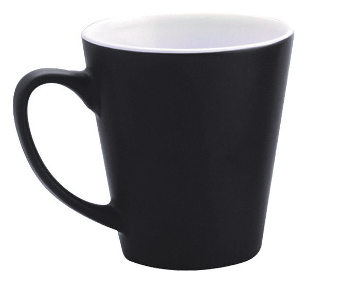 CONICA MATE - Taza cónica bicolor con exterior mate. CAP. 11 OZ. Venta en múltiplos de 12.