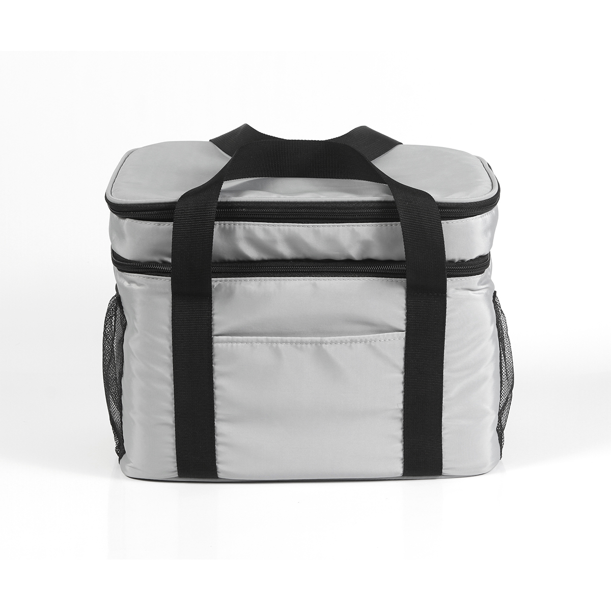 Lonchera / Hielera Proppino. - Hielera térmica fabricada en poliéster con forro de PU,  ideal para llevar tus comidas y bebidas de forma segura y mantener su temperatura durante más tiempo, cuenta con dos compartimentos principales que te permiten organizar tus alimentos y bebidas, también cuenta con un bolsillo frontal con cierre de cremallera, donde puedes guardar artículos más pequeños como llaves, tarjetas o paquetes de condimento,  asas superiores que son cómodas y resistentes, trae aparte una correa para transportarla colgada en el hombro la cual es ajustable y desmontable.