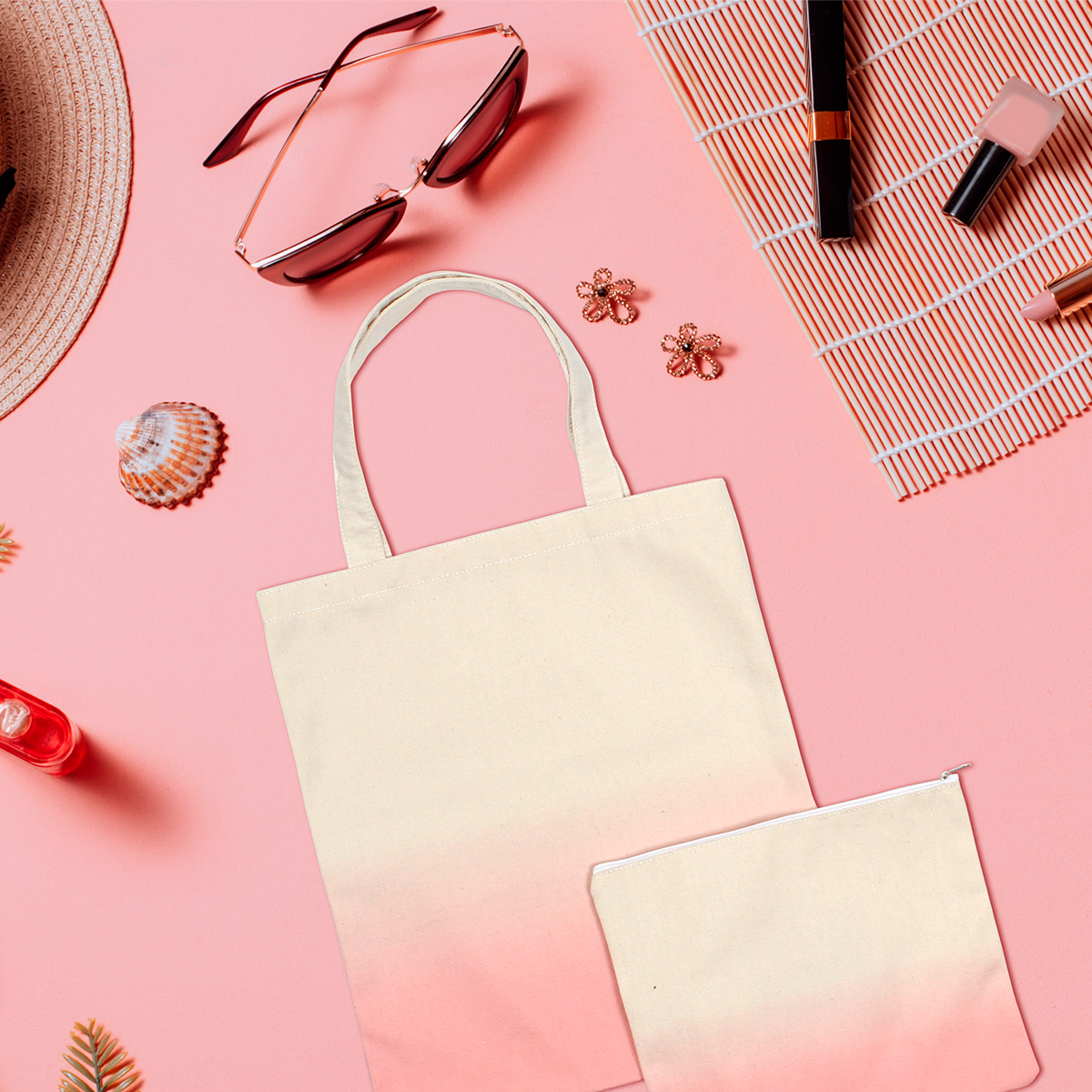 Set de bolsas Careri. - Fabricadas en lona de algodón de 10 onzas,  el degradado de color en la base, le da un toque distintivo a estas piezas. Tanto la bolsa shopper como la cosmetiquera te brindan soluciones prácticas y versátiles para llevar tus pertenencias.