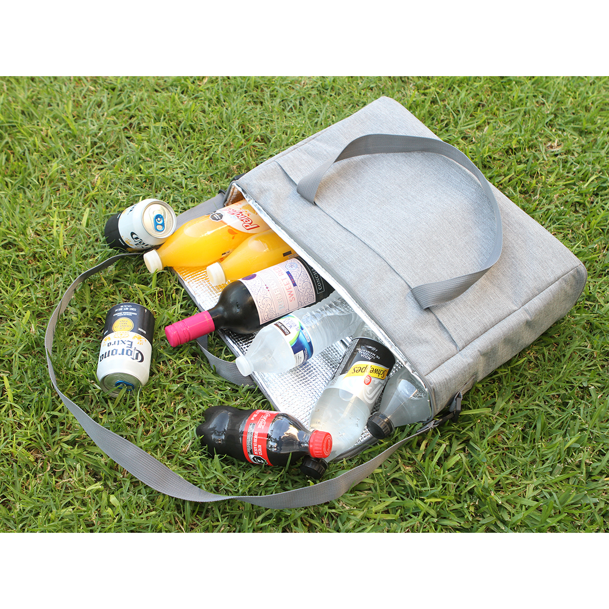 Hielera Alcamo. - Hielera térmica fabricada en poliéster con forro de aluminio para mantener la temperatura de los alimentos, bolsillo frontal, bolsillo interno de malla, correa para hombro ajustable (la cual es desmontable) y asa superior.