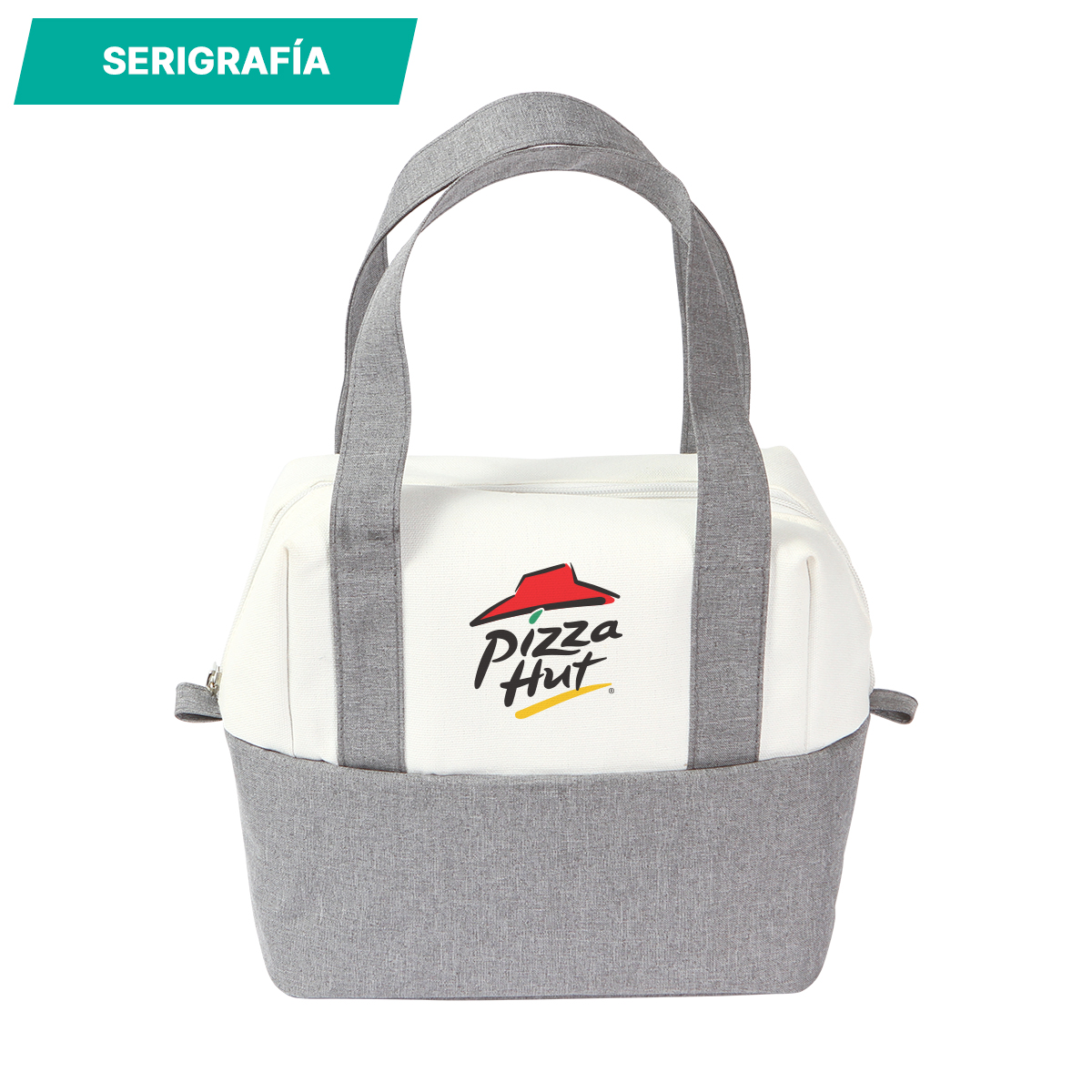 Lonchera Purbach. - Lonchera  hermética fabricada en poliéster, PEVA y Canvas, con forro interno ideal para llevar tus comidas y bebidas de forma segura y mantener su temperatura durante más tiempo. Cuenta con un compartimento principal con cremallera y dos asas a los lados.