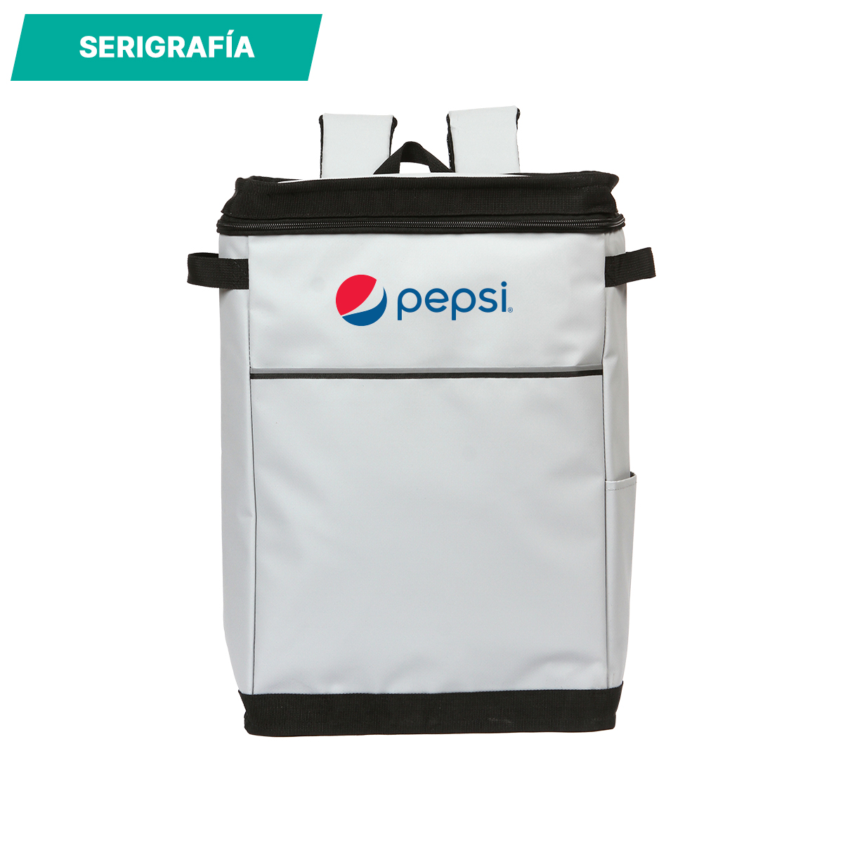 Hielera Danzé. - Hielera tipo mochila fabricada en poliéster y PVC con forro interno de PEVA. Cuenta con un compartimento principal con cierre y dos asa pequeñas laterales para su mejor manipulación.