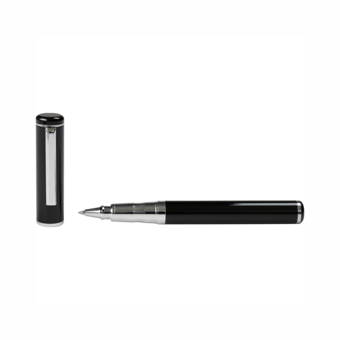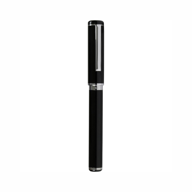 BOLÍGRAFO “MILOS” Cuerpo color negro engomado. Clip, puntera y detalles en ...