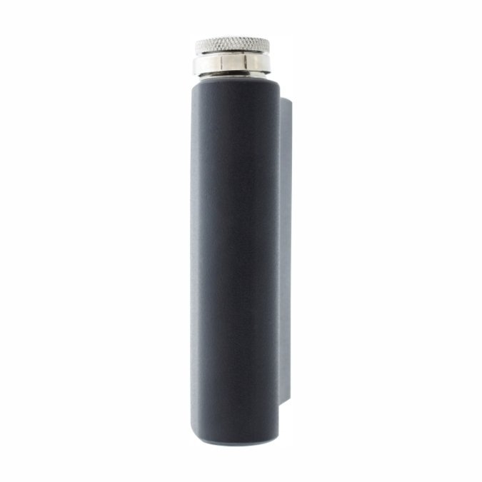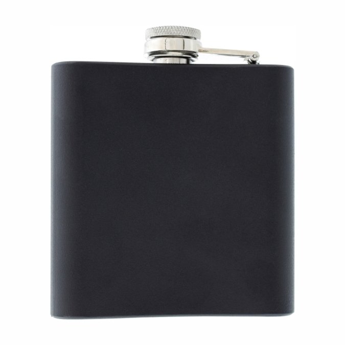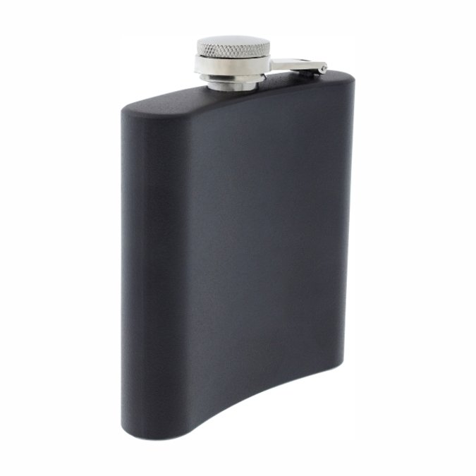 Licorera Rock Licorera de acero inoxidable de 200 ml. Acabado negro mate con textura tipo roca que permite grabados de mayor profundidad. Pequeña tapa con cierre de rosca. Se entrega en caja de cartón individual. Lavar antes de usar.