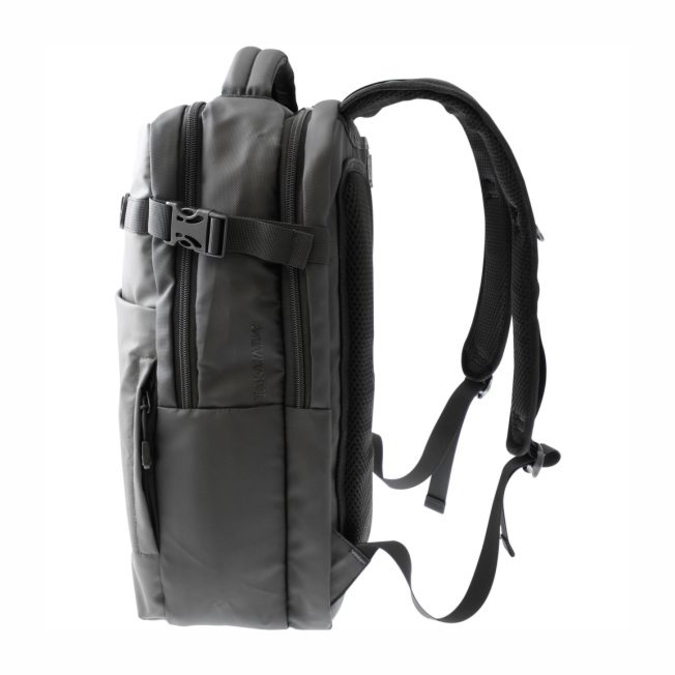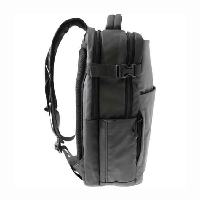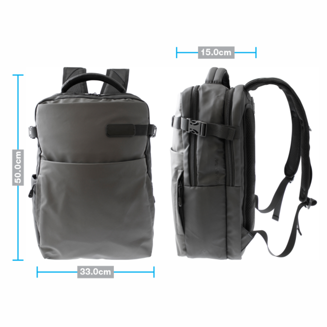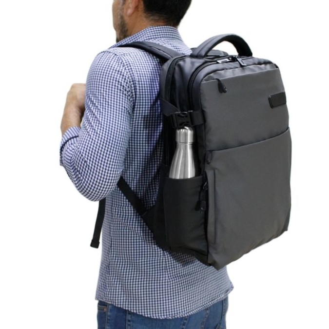 Mochila Takayama Tekna Mochila marca TAKAYAMA, ideal para viajes de negocio, recreativos o para el uso cotidiano. Curpiel de suave textura en combinación gris y negro. Material repelente al agua fácil de limpiar. Cuenta con 2 compartimentos principales de gran dimensión. Ambos con doble tira cierres con orificio para candado. Organizador de accesorios y espacio para lap top de 15.6” con padding de alta resistencia. Tres bolsas frontales de diferentes dimensiones ideal para facilitar el acceso a tus pertenencias. Asas de colgar acolchadas con bandas reflectantes de alta luminosidad. Bolsa lateral para bebidas con elástico de seguridad. Manga posterior para colocar en bastón de maleta. Canal de ventilación en espalda. Peso: 1.05 Kg. Capacidad: 20 Litros.