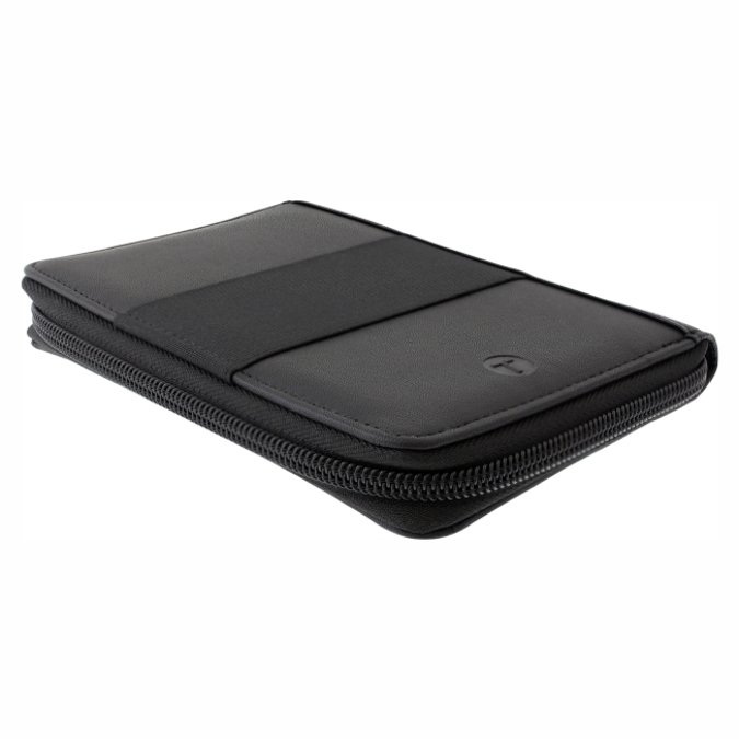 Porta Pasaporte Takayama Kuma Porta pasaporte con cierre, marca TAKAYAMA. Combinación de 2 texturas en curpiel color negro. Cuenta con espacio para 6 tarjetas, compartimento extra para efectivo. Incluye bolígrafo metálico color acero, tinta negra. Elástico exterior multi usos.