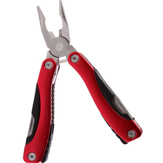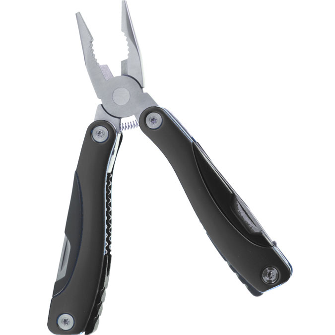 Pinzas Dansk Multi herramienta 9 en 1: Pinza de uso general, en cuyos mangos encontramos un par de navajas de diferente tamaño y forma, desarmadores (cruz y plano), abre latas y lima de uñas. Fabricada de acero inoxidable con terminados de aluminio en los mangos. Es plegable para su fácil transportación. Incluye estuche individual.