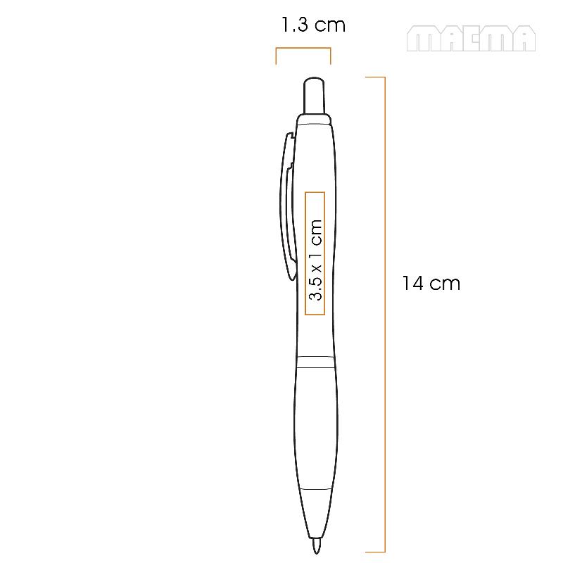 SOCHI Bolígrafo plástico de colores sólidos con aplicaciones en negro. - MEDIDAS: 14,0 x Ø 1,3 cm
