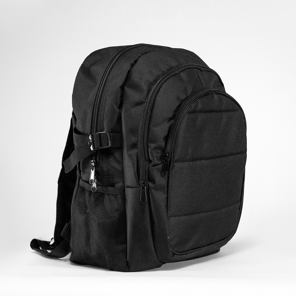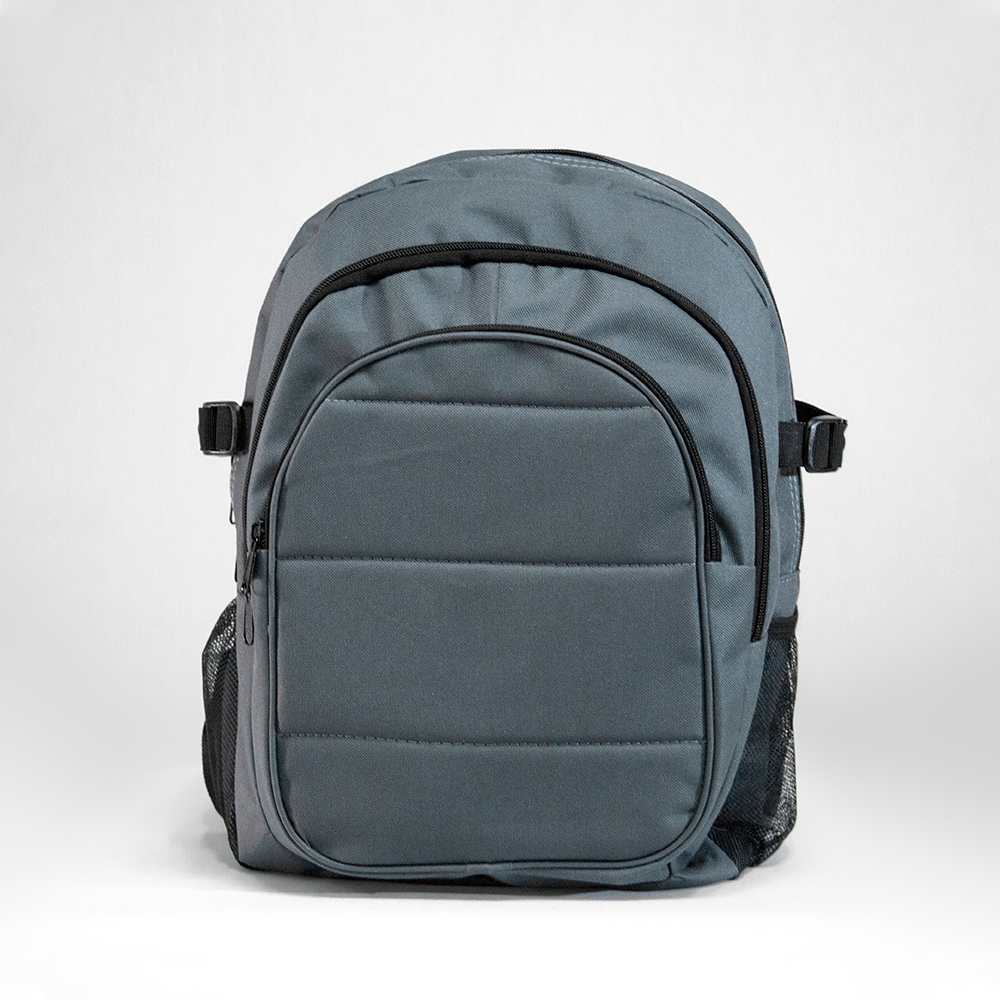 BUENOS AIRES Mochila de poliéster con bolsa principal acolchada y dos compartimientos frontales con cierre. Correa de ajuste lateral y bolsas de malla.