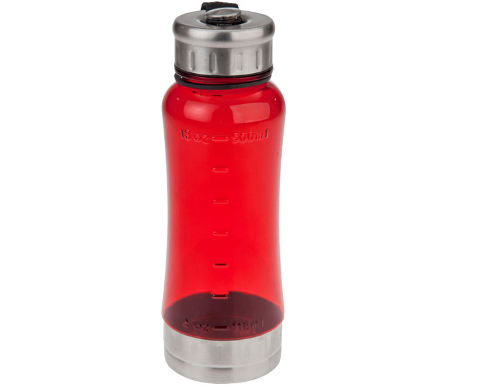 TURIN - Cilindro deportivo de plástico y acero inoxidable con tapa de rosca y correa. CAP. 500 ml. *BPA FREE.