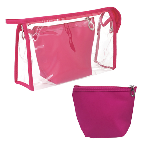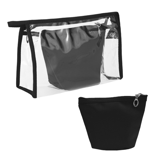 QUEEN Cosmetiquera de plástico con cierre, asa y broche, que en el interior incluye mini cosmetiquera de poliéster con cierre.